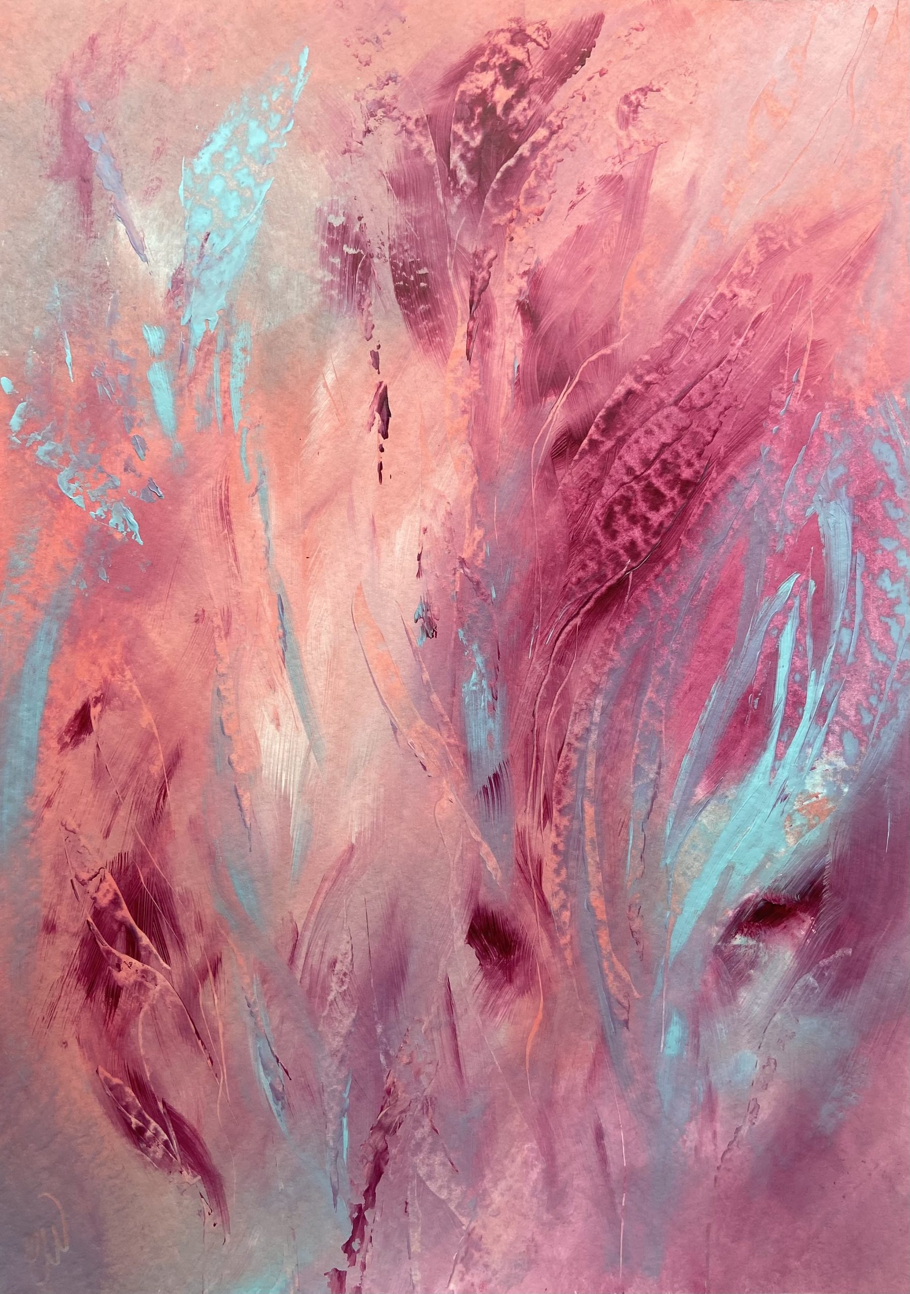 A beautiful abstract botanical painting with a delicate and soft palette. Some images show what this piece looks like framed. Frames not included. 59.4 x 42 cm (A2 size) Acrylic on paper. Requires framing.