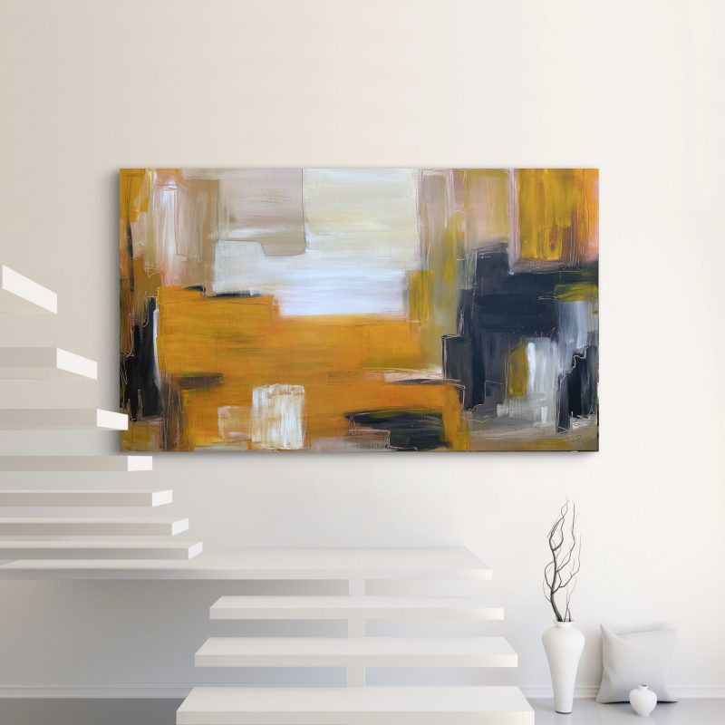 Acrylic and texture paste on stretched canvas, sides are painted, sealed with UV protective varnish and ready to hang.
