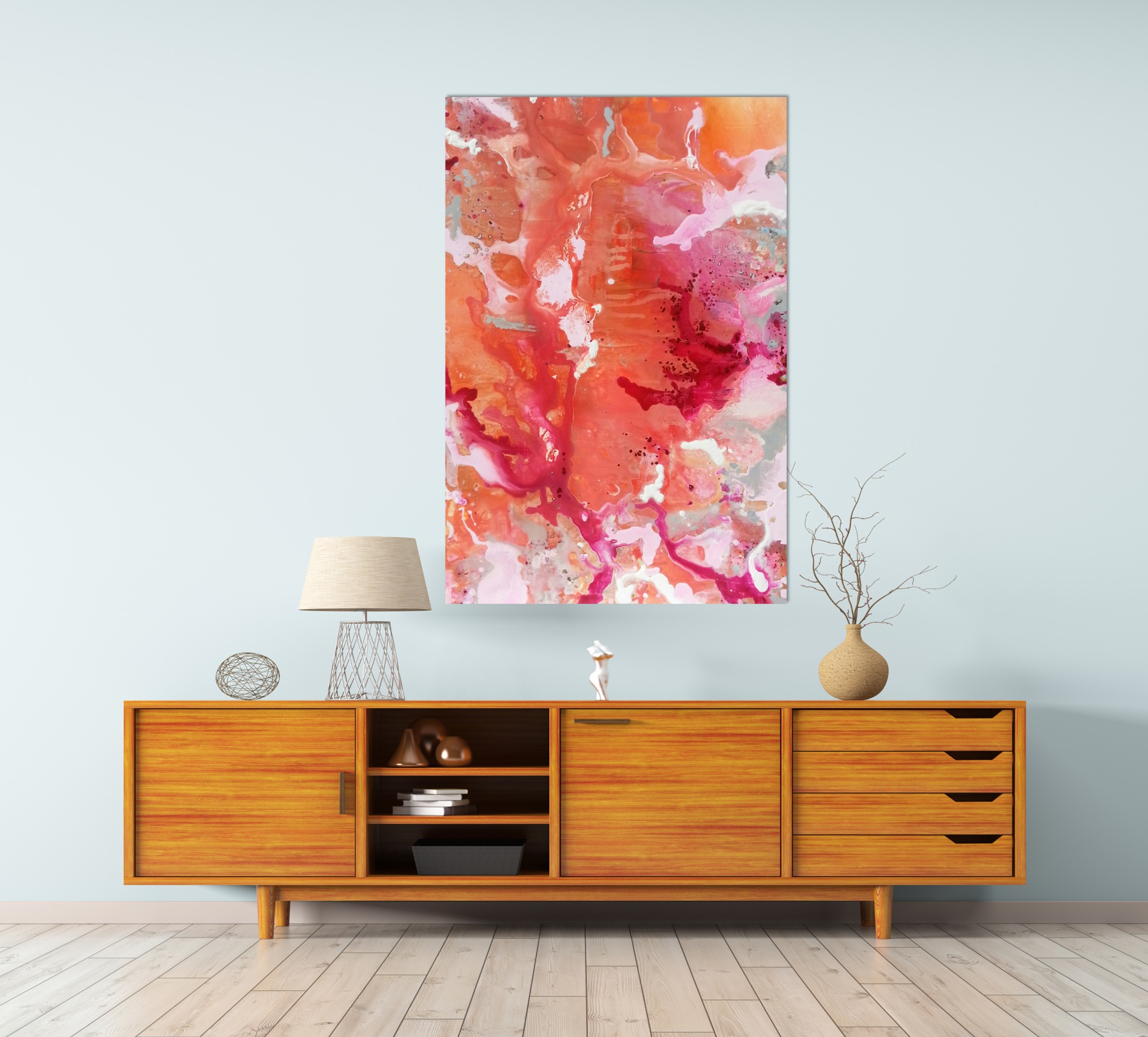 A unique, colourful, tropically inspired original artwork, this mid size painting will be at home in a variety of settings and has the happy feel of summer and holidays about it!