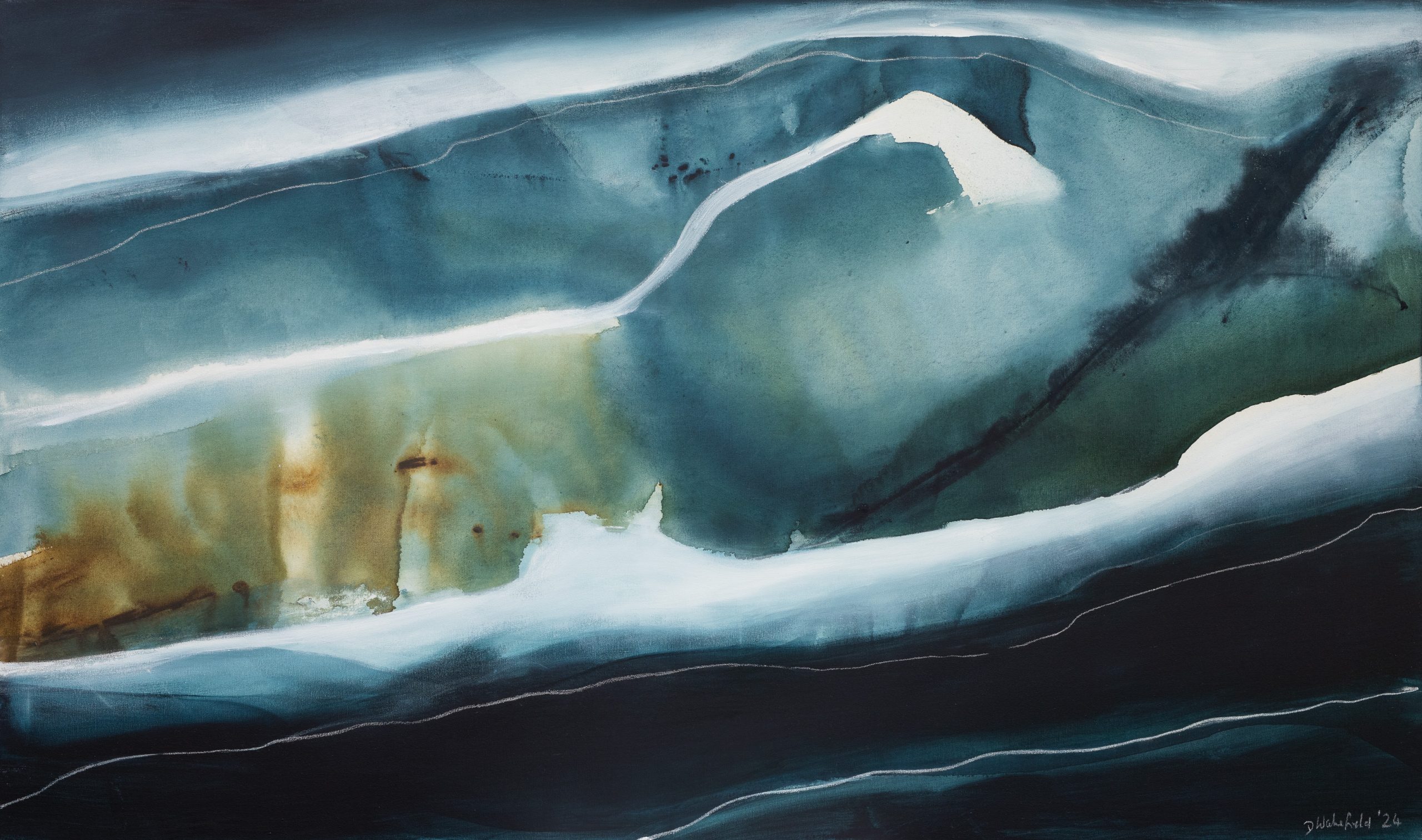 High Horizon by Dinah Wakefield is inspired by the light, the colours and the natural beauty of the Noosa region of Australia. “What I love most about Noosa is the interplay of light. From the oceans to the clouds, to the river estuaries and the hinterland, this canvas unfolds before me every day and finds expression in my paintings”.