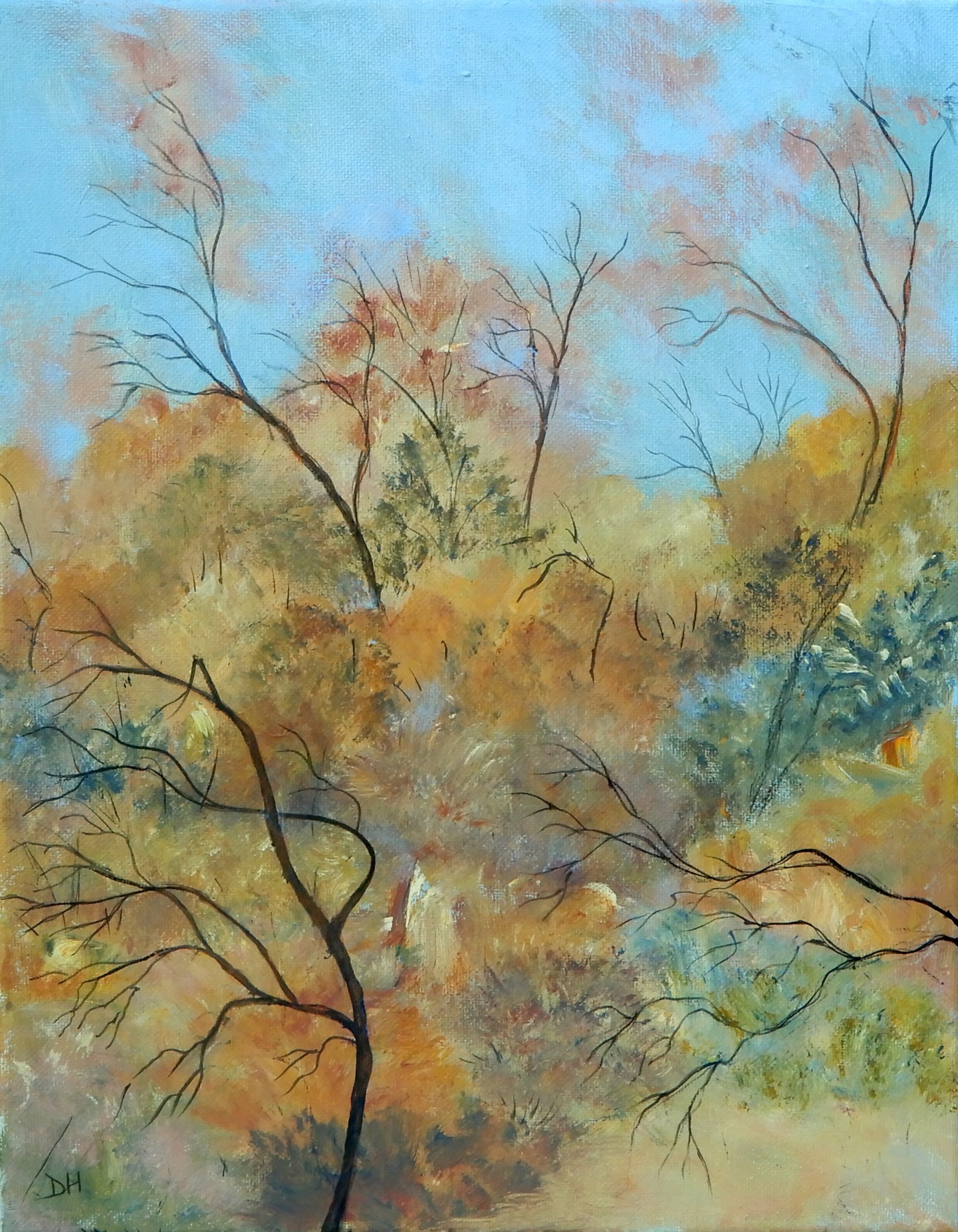 I love the colours of high summer in the bush and I wanted to capture the burnished tones of foliage and grasses drying in the sun under an impossibly blue sky.