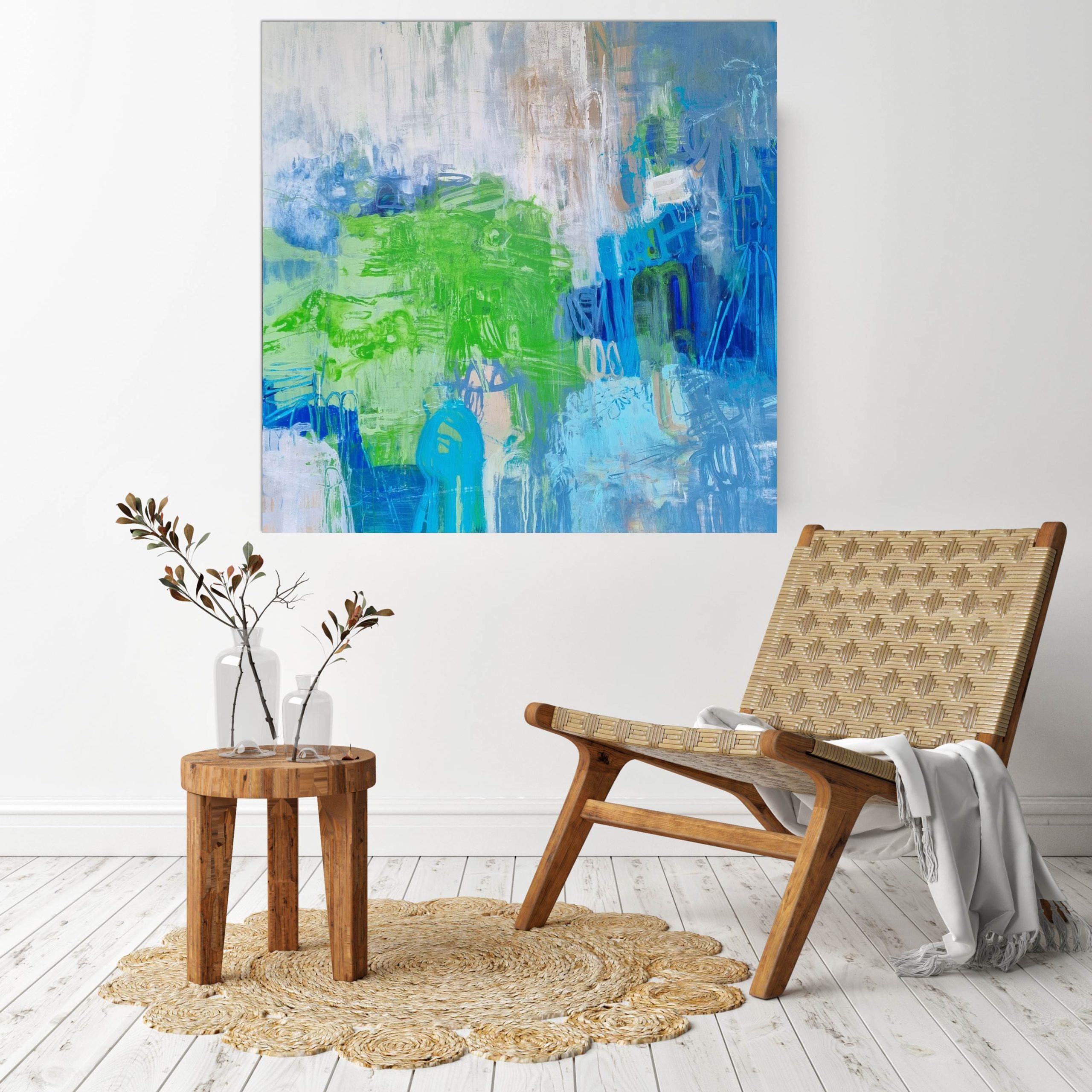 This work is completed with a soft satin protective finish and matte white edges. It’s feel within a room is gentle, calming and soothing yet expressive and quietly stunning; sure to make an appealing feature, at home equally in a domestic interior or corporate space.