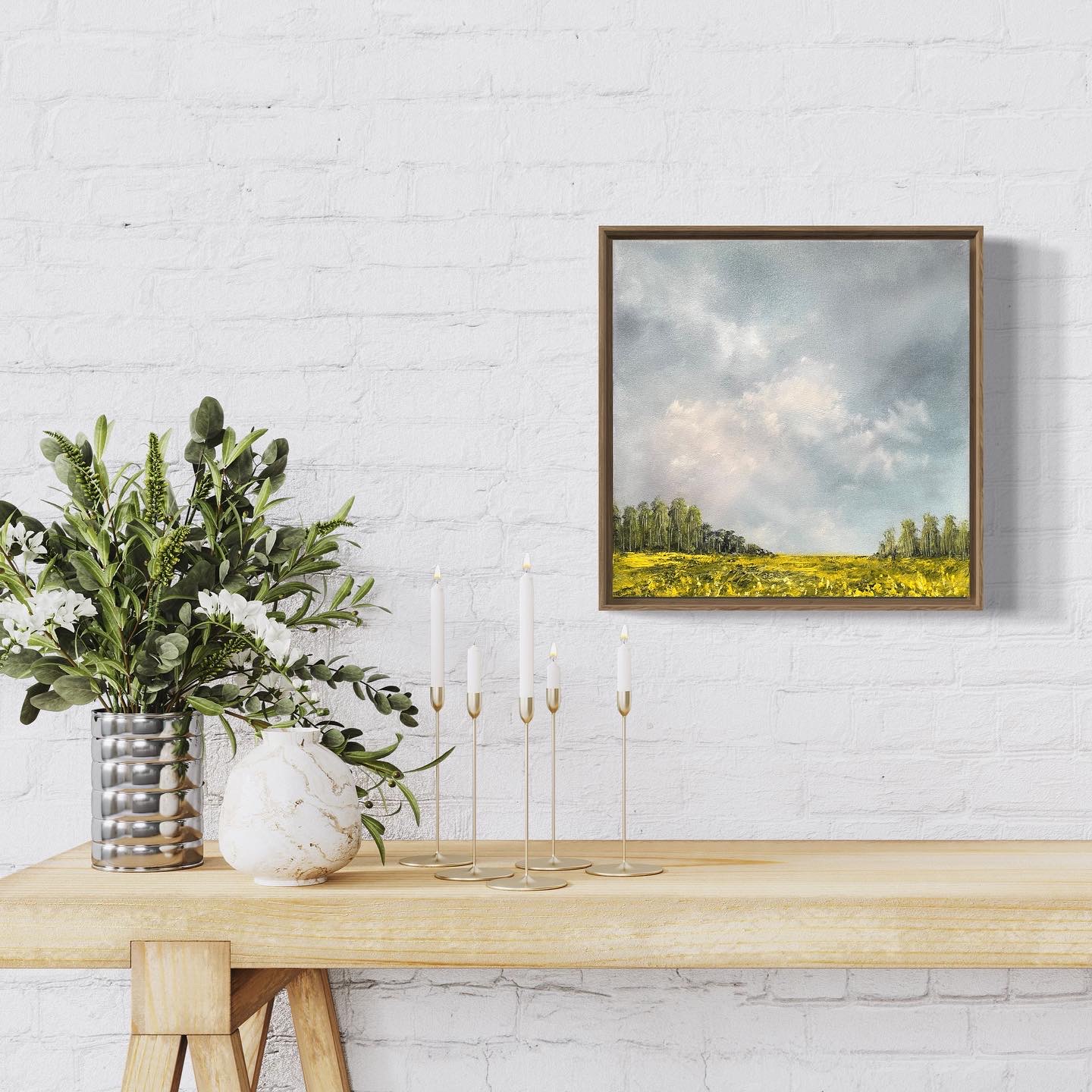 Ready to hang, original oil painting on stretched canvas with oak floating frame.