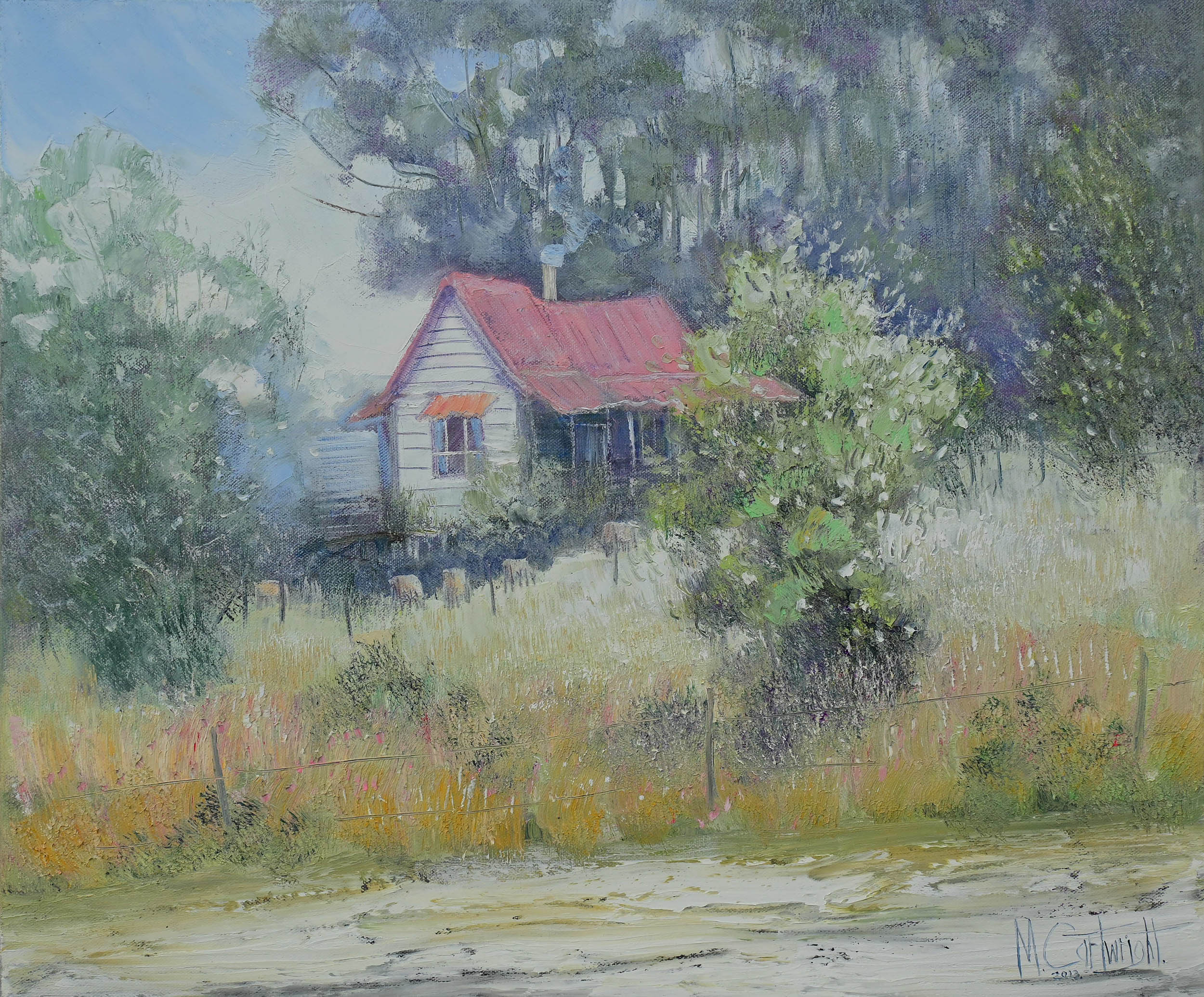 A charming old country home contrasts against a backdrop of gum trees in the beautiful countryside of south Western Australia. I was inspired by the characteristic charm of the old home, the surrounding trees, grazing sheep and the hint of smoke from the rooftop chimney which let’s us know that someone is home.