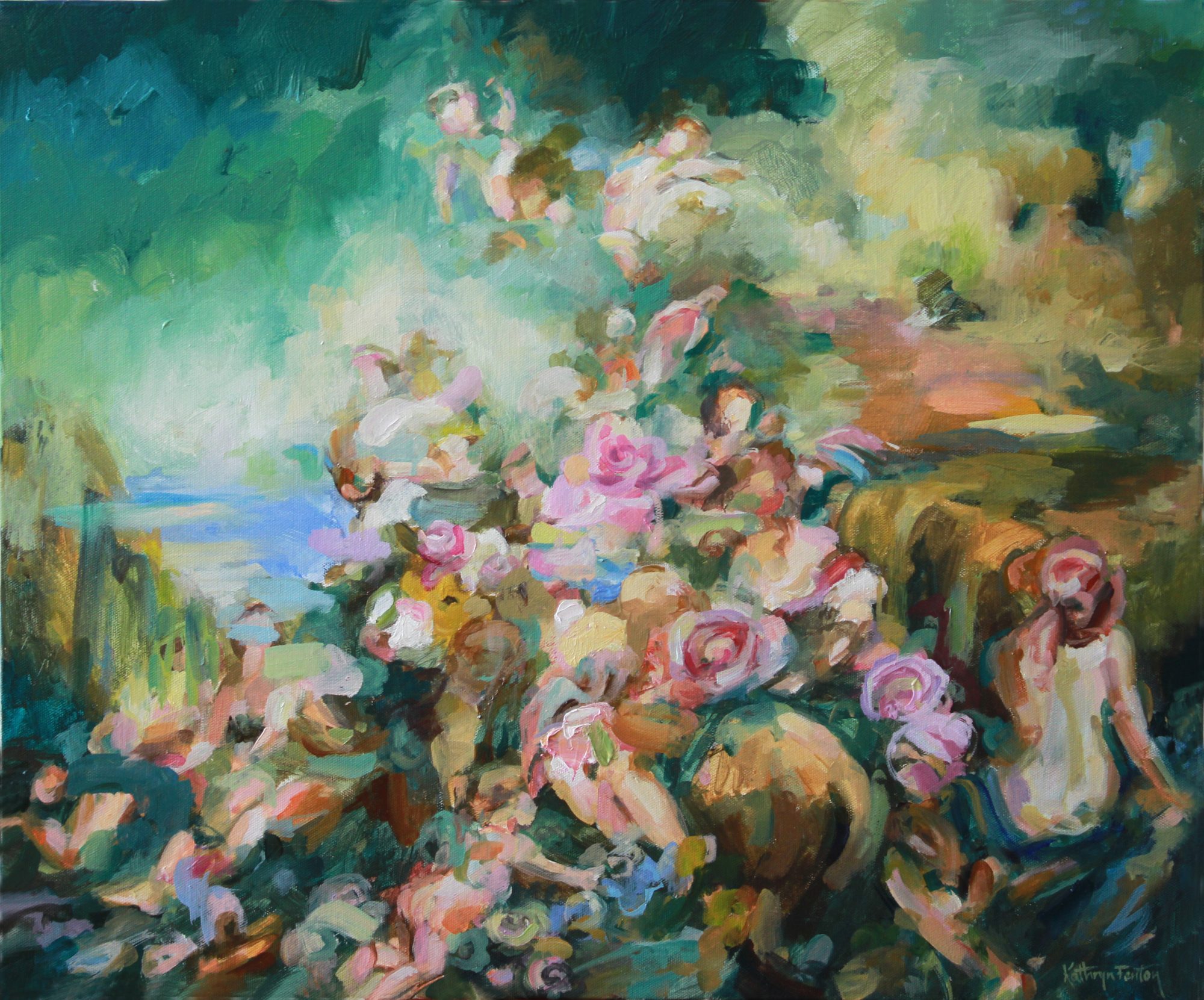 Abstract figurative landscape in oil on gallery style deep canvas.