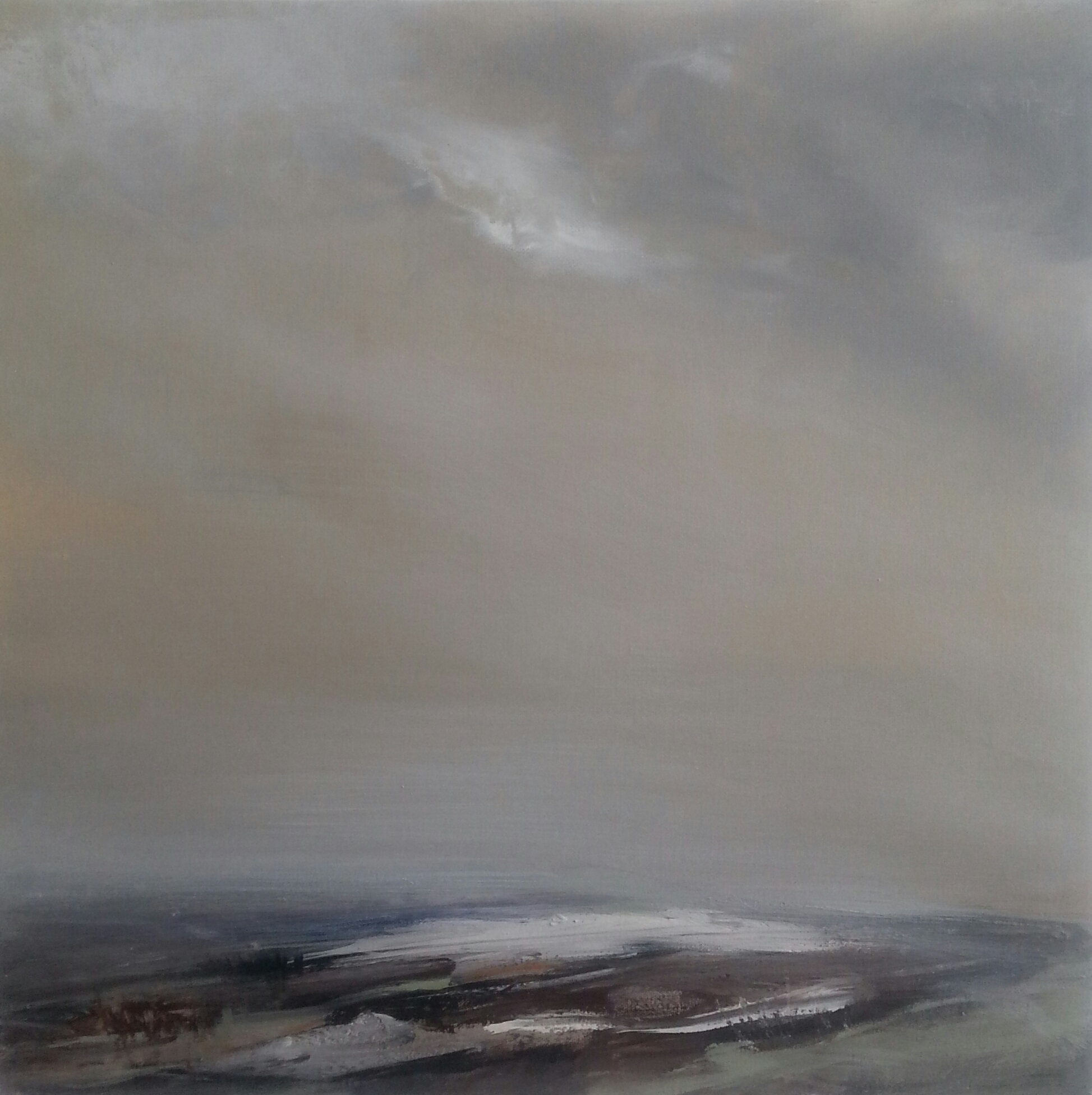 The impression of the land being rugged, the sky having a subtle warmth in earthy neutrals, along side fleeting clouds, I hope make this a pleasing painting.