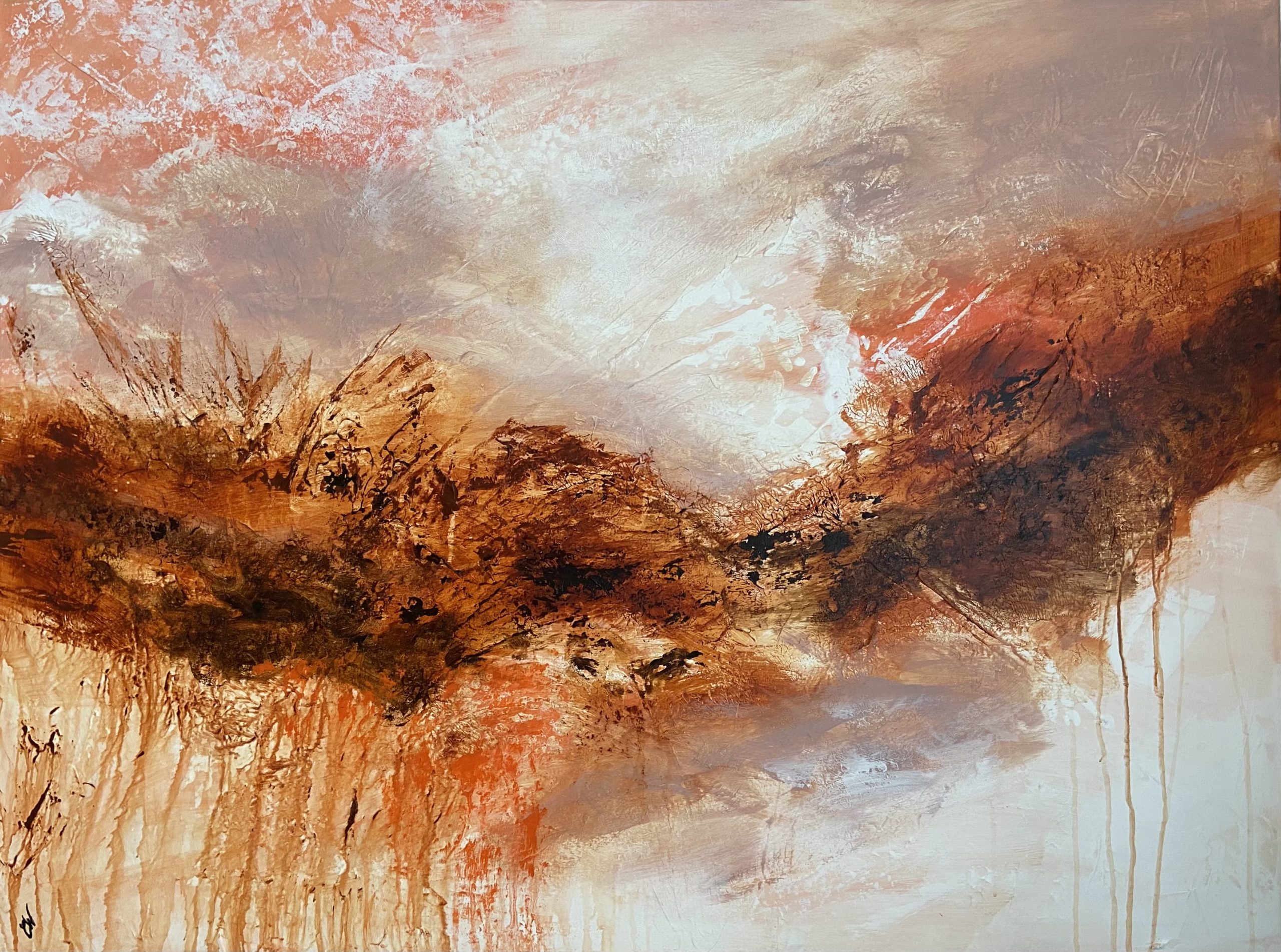 Hope by Carrie Welsh is a beautifully textured abstract landscape painting. 121.9 x 91.4 cm. Acrylic on canvas, ready to hang. Frame not included.