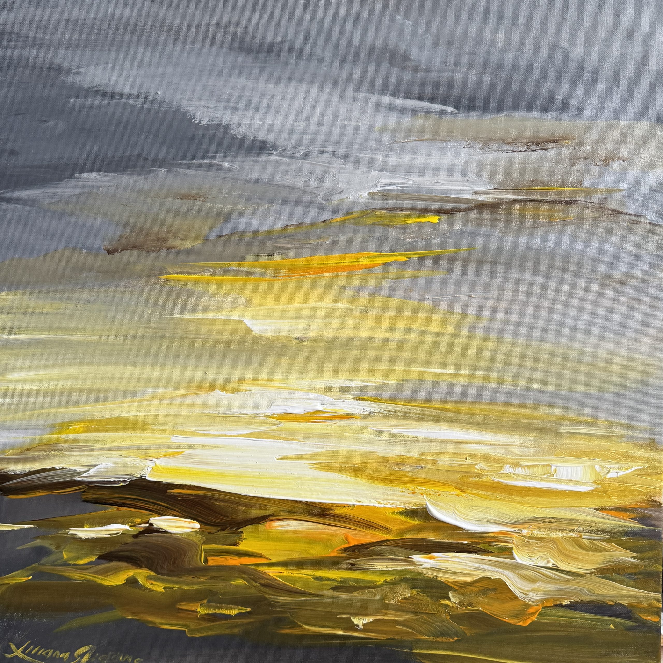 Acrylic paint on canvas, stretched and ready to hang.