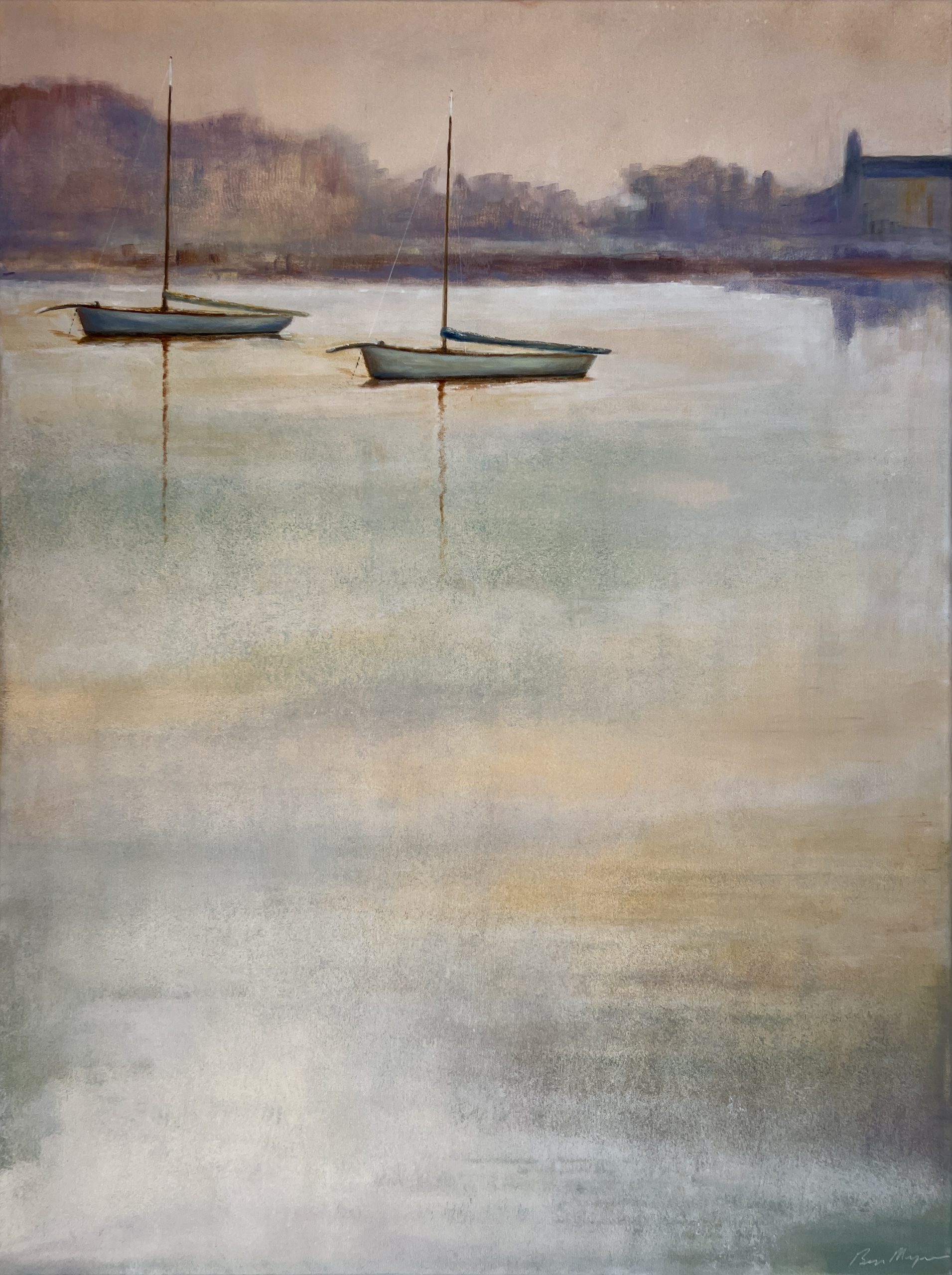 Hot Summer Mornings by Ben Musgrove – Inspired by my love of the sea, sky, boats and capturing the moment. In this painting the calmness of the water and boats are being taken over by the glow and the warmth of the morning sky, announcing the arrival of a hot summers day ahead in Melbourne