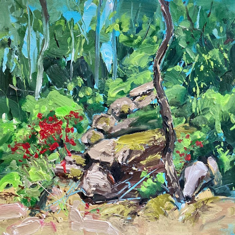 I view painting as sheer passion and feeling. Through my process I don’t seek to depict a set idea or subject, but instead I let scenes and dynamic movement emerge organically.