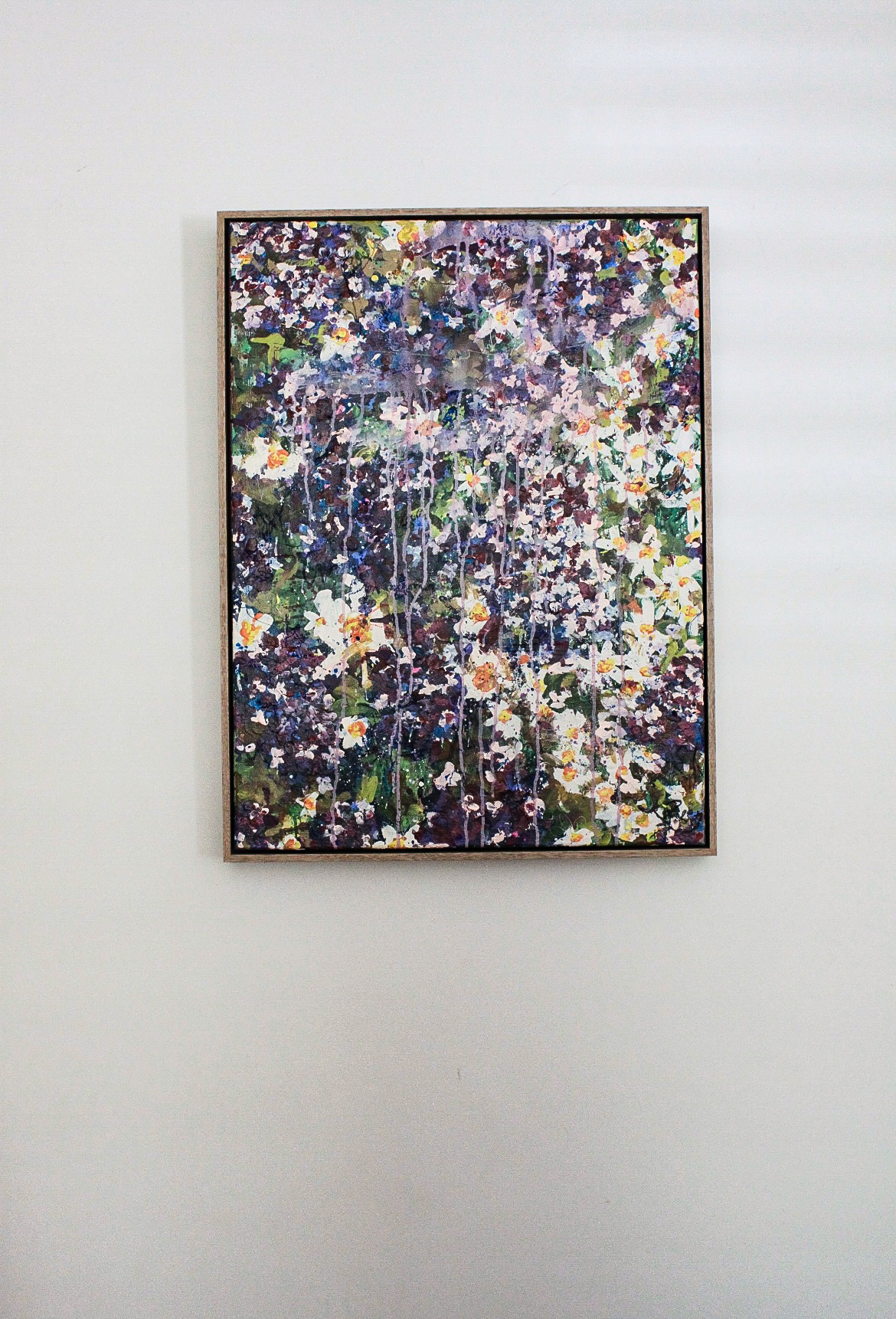 Hydrangea Overload by Sabina Puzey – This beautiful abstract painting is of hydrangeas and daisies in full bloom in summer that they are almost fighting for space and bleeding into each other. This piece is full of texture, with paint dripping down the canvas and jutting off the daisies.