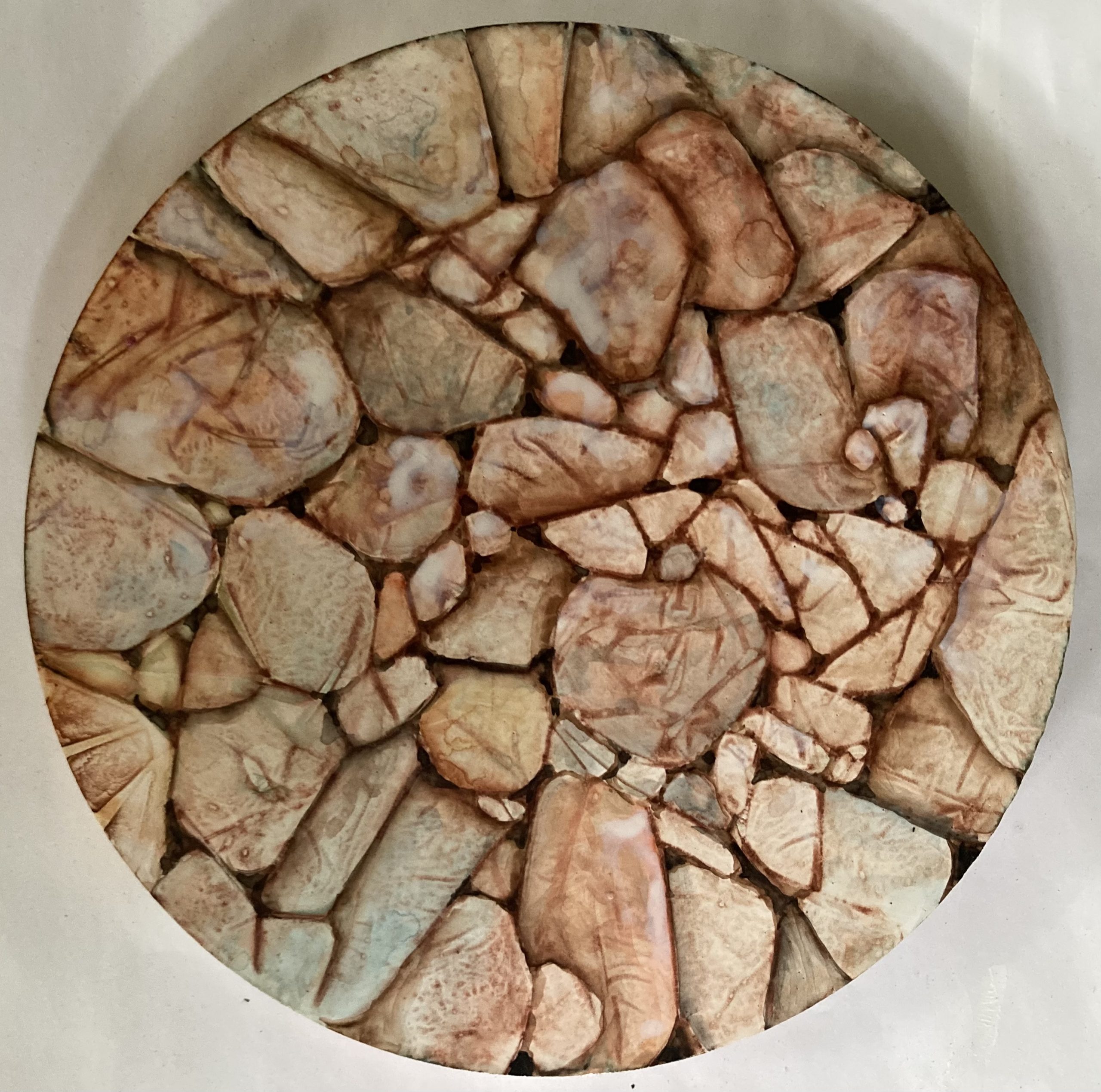 I Found The Perfect Pebbles by Marta Blaszak –  is a small, round artwork capturing a the natural textures and shapes of pebbles