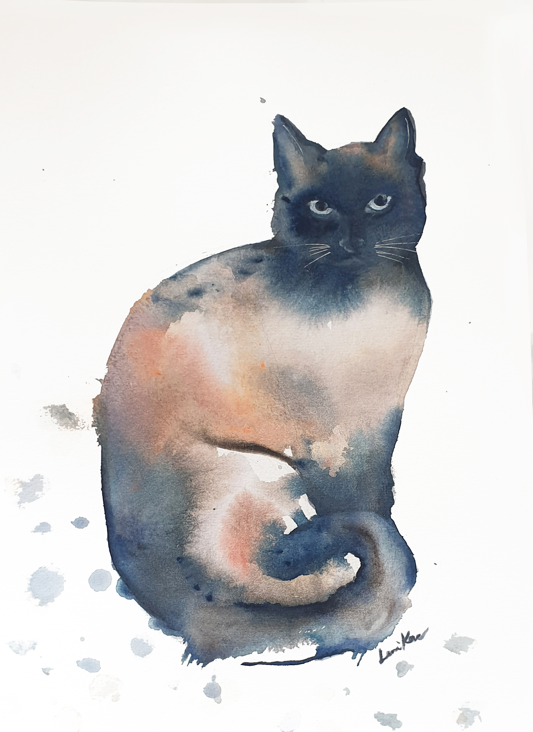 I See You  – A beautiful watercolour cat painting by Sydney artist Leni Kae, from her “Animal Spirit” range.