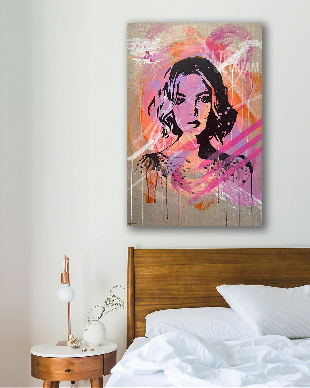 Acrylic, spray paint and ink on canvas