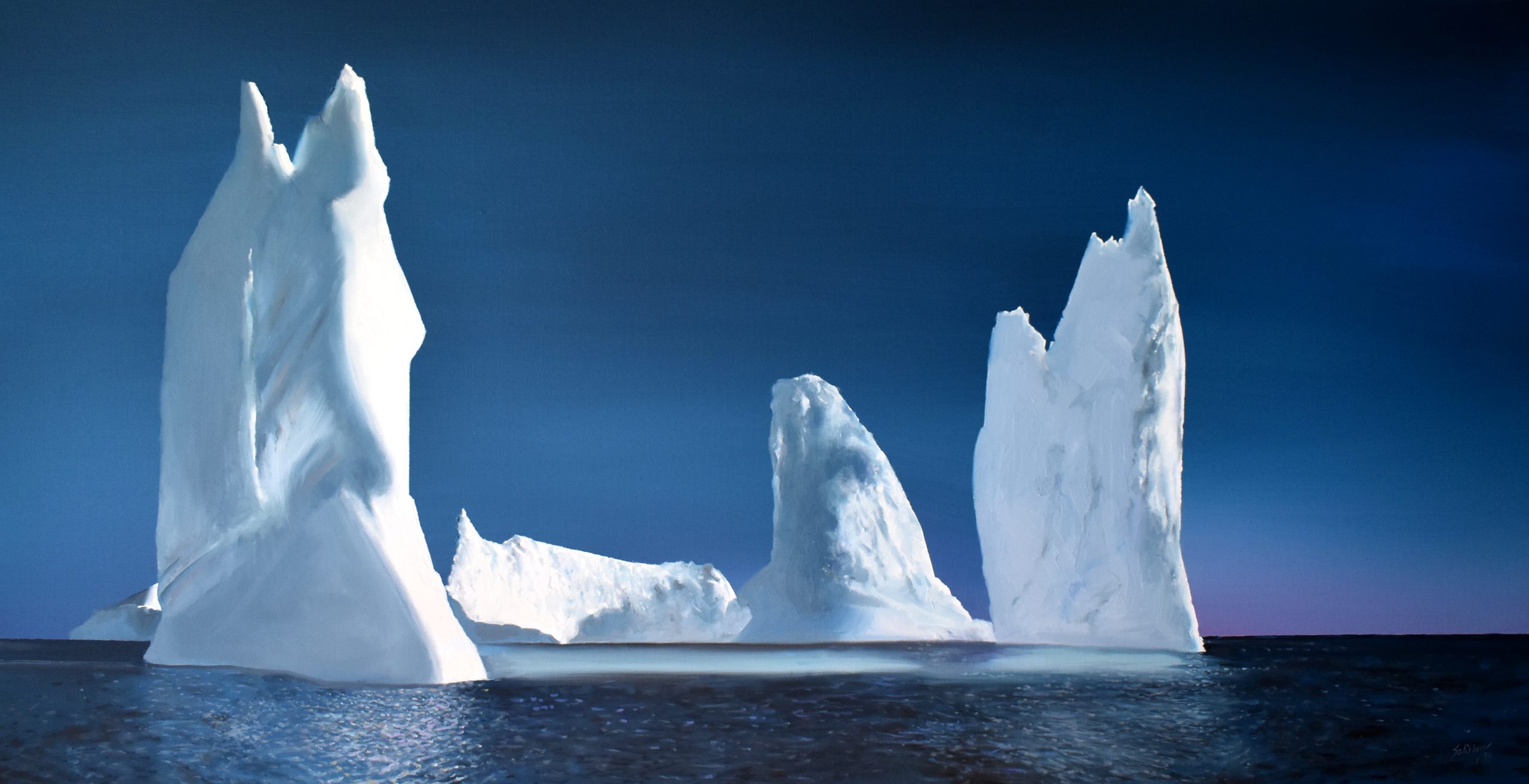 Ice Towers of Greenland by Trevor Salisbury is a powerful painting of light and form. These majestic ice sculptures are breathtaking in their beauty and size.