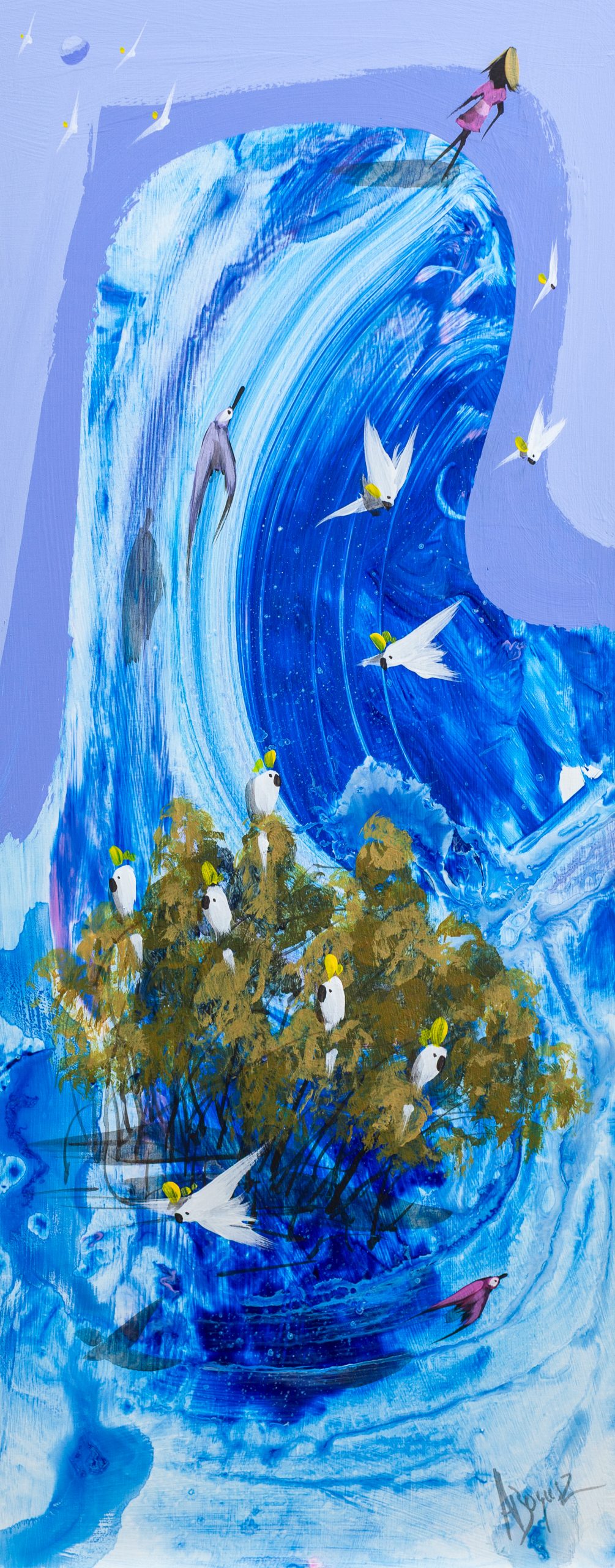 Adam Bogusz is a Brisbane-based contemporary artist whose vibrant, expressive paintings draw viewers into imaginative worlds filled with emotion and colour. Born in Melbourne in 1971 and raised in Townsville, Bogusz began his painting journey in 1998. His early exposure to art, through his father—an artist himself—and his background in acting and music, influences his dynamic approach to painting, where spontaneity and a love for colour are central.