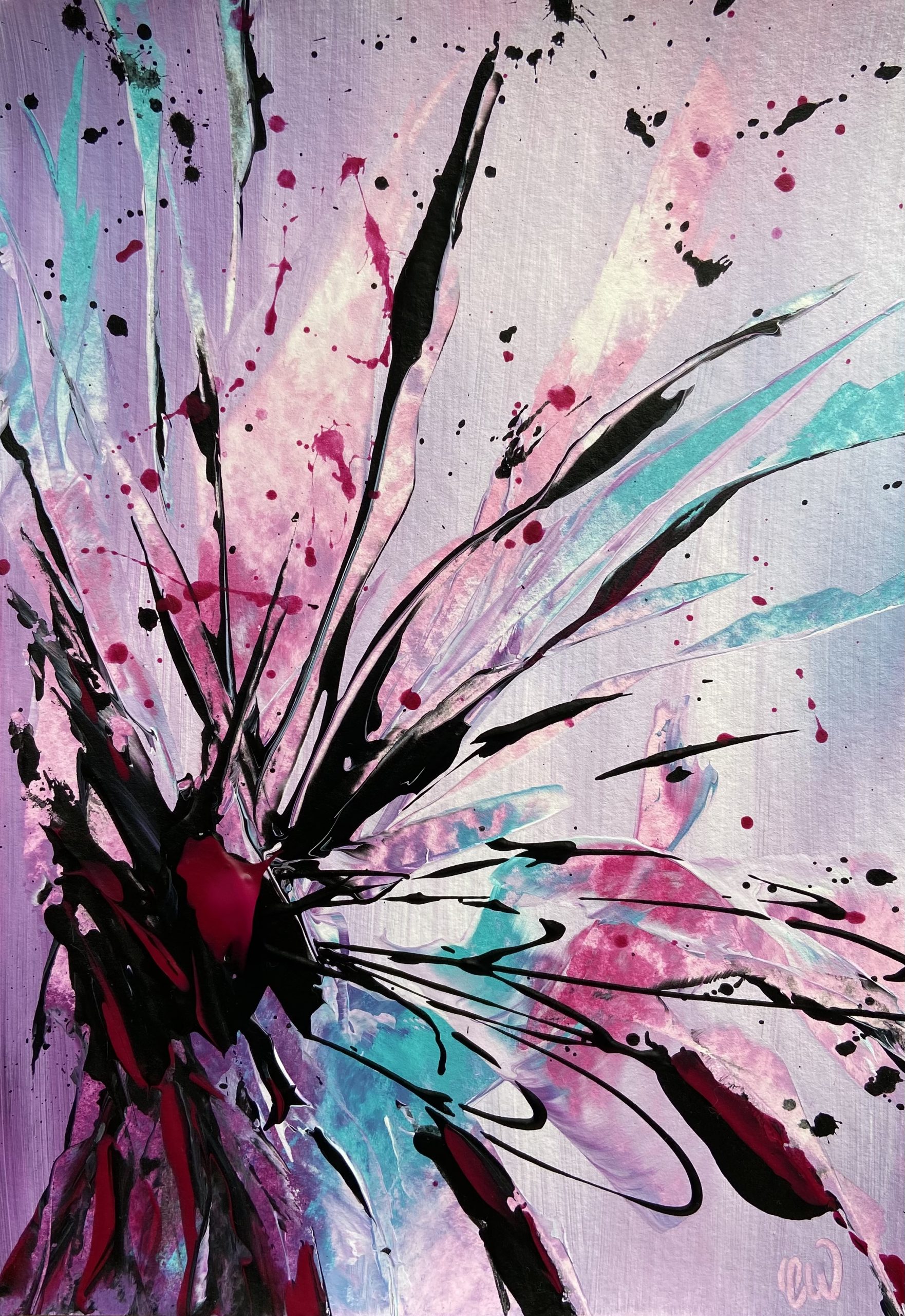 Illuminate by Carrie Welsh is an energetic botanical abstract piece that is full of life! This will brighten up any room. Some images show what this piece looks like framed. Frames not included. 21 x 29.7 cm (A4 size) Acrylic on paper. Requires framing.