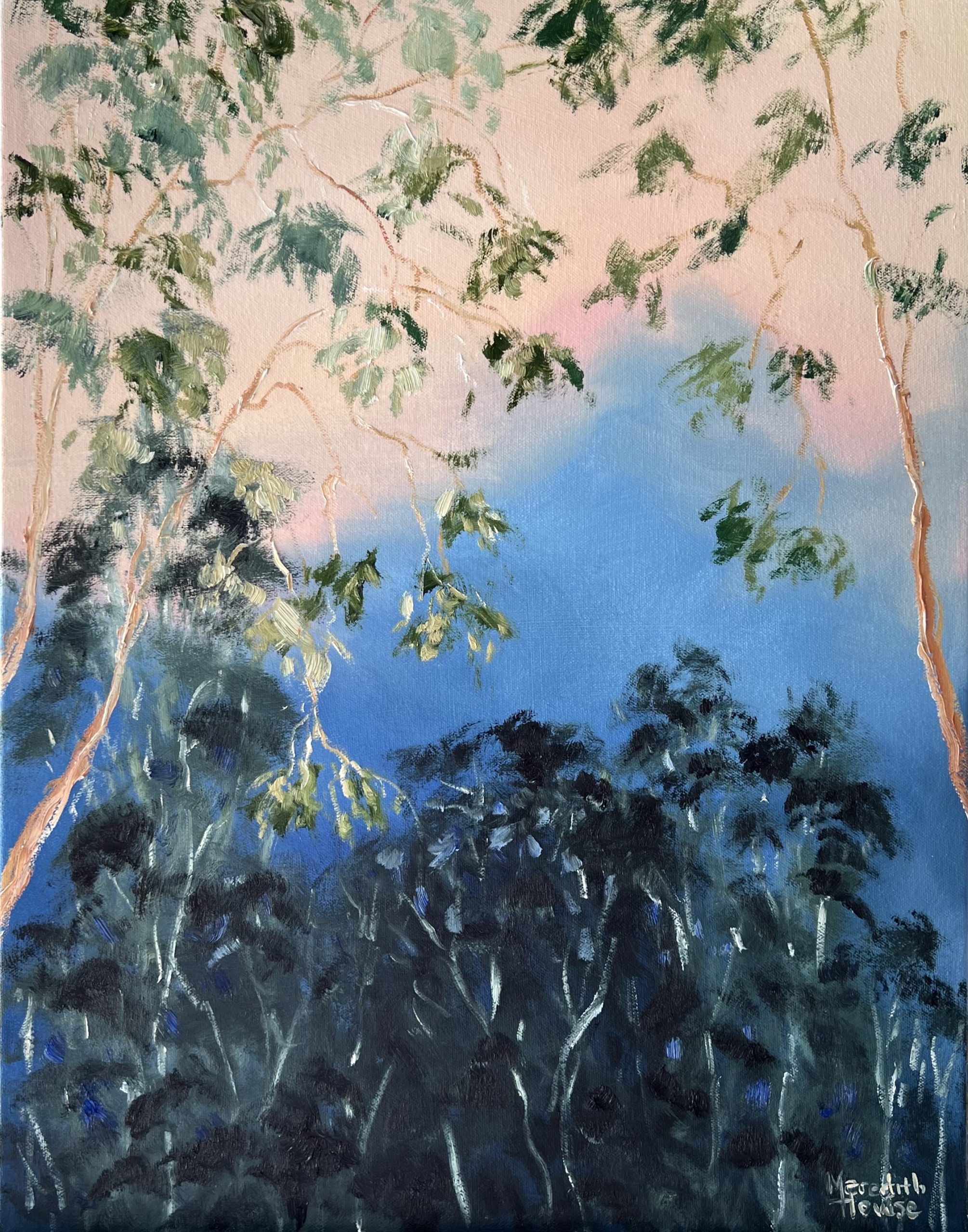 This instalment into the Illumination series is inspired by the beauty of Jacaranda trees. A palette of pinks, peach, greys, dark greens and blues to brings the scene to life.
