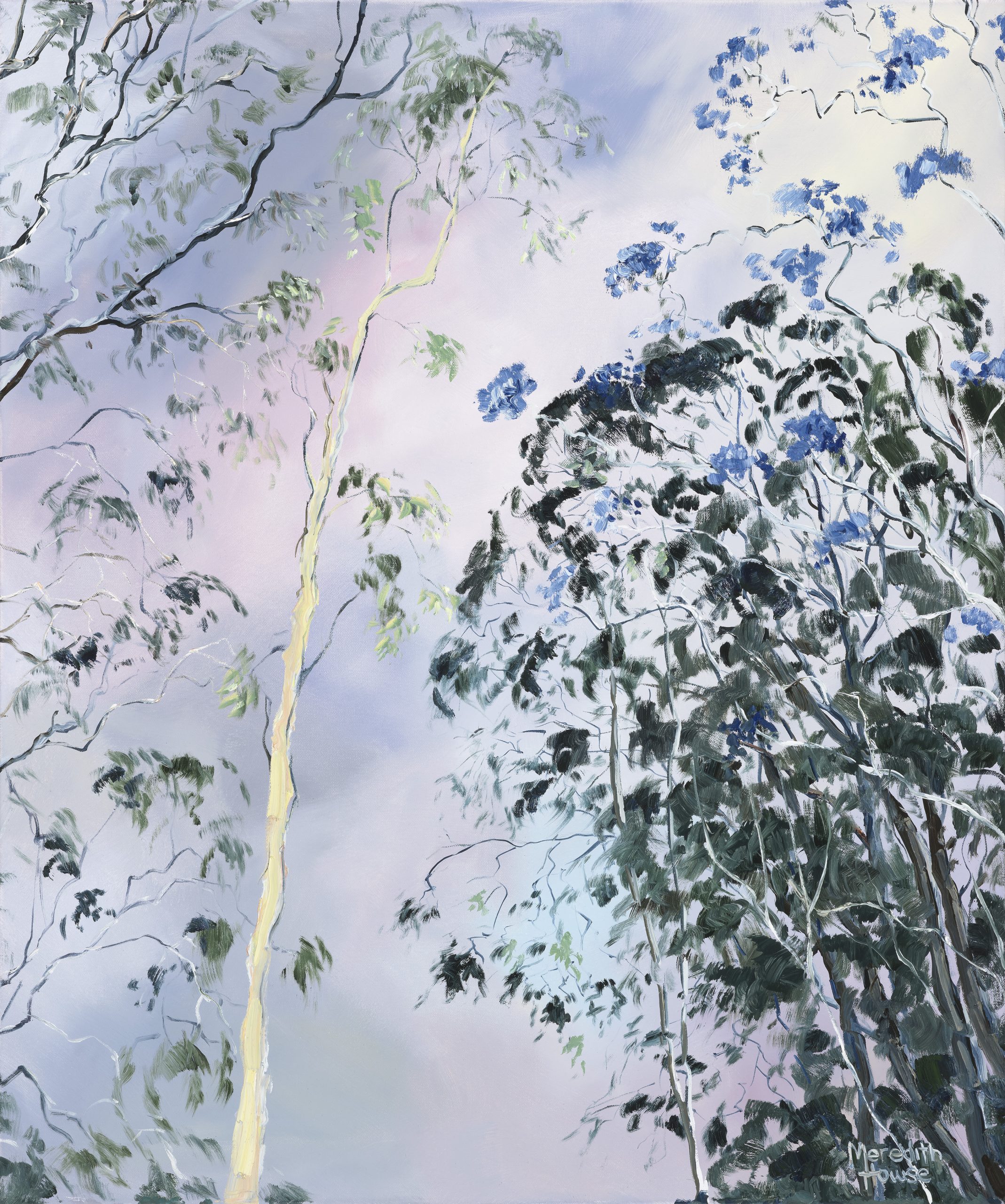 Illumination Trees of Ashgrove by Meredith Howse is a captivating artwork inspired by the awe-inspiring beauty of a distant summer storm. Capturing the essence of nature, particularly the grandeur and majesty of towering trees. The artist expertly uses a palette of pinks, blues, greys, dark greens, and gum tree blues to bring the scenes to life.