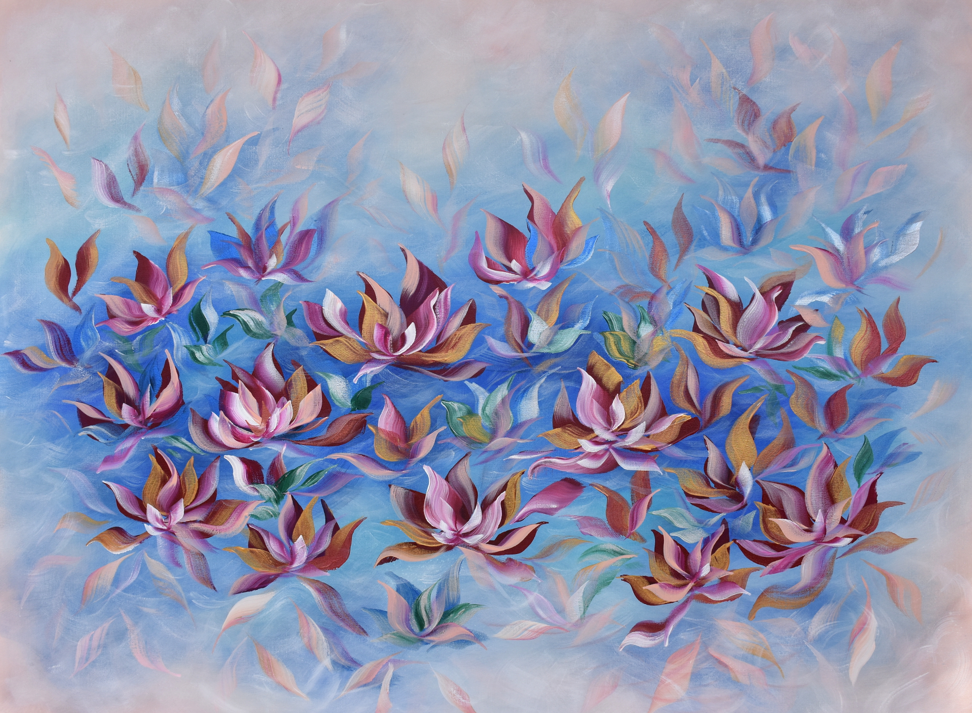 Imagination by Eva Pearl – Acrylic on gallery canvas stretched and ready to hang. Signed on the back. It has a strong wire at the back. Sides of the painting are painted as a continuation in the same colour to match the artwork so there is no need to frame. Signed with a Certificate of Authenticity.