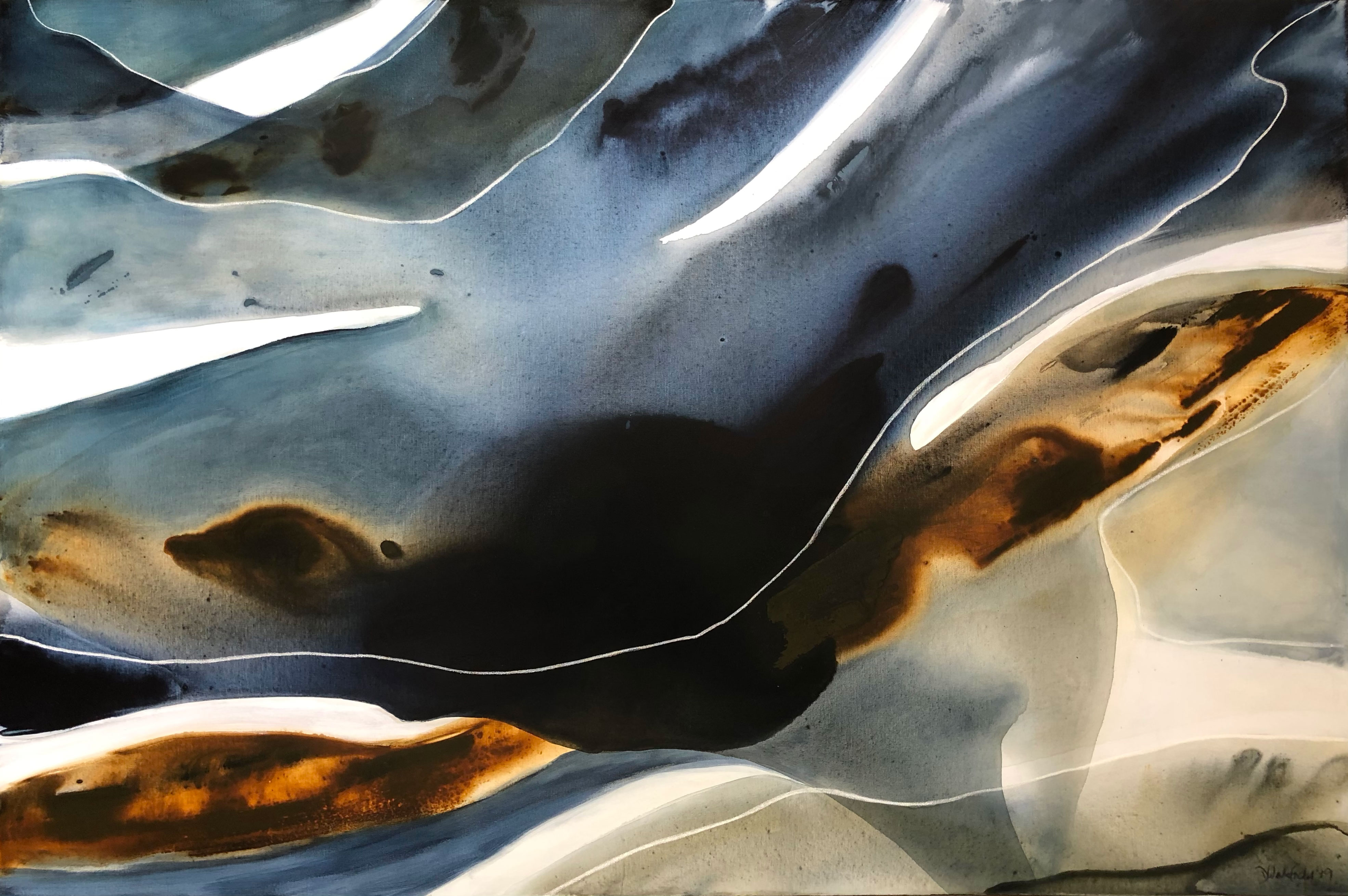 Imalia 2 is inspired by the light, the colours and the natural beauty of the Noosa region of Australia. “What I love most about Noosa is the interplay of light. From the oceans to the clouds, to the river estuaries and the hinterland, this canvas unfolds before me every day and finds expression in my paintings”.