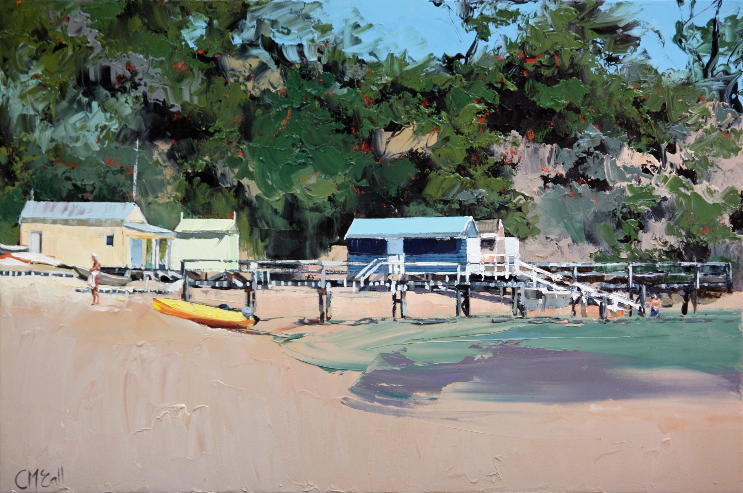Celebrating endearing memories of the beach, this painting is completed with a palette knife to give texture, bold colour and movement.