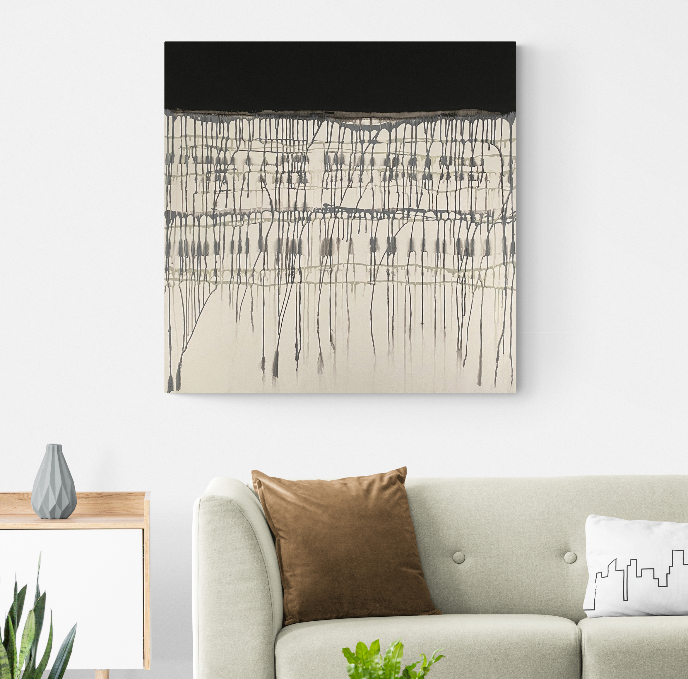Imperfect Balance – Granite is an original painting influenced by rhythmic patterns from nature it is intended to redirect your thoughts as you meander across its calming surface of monochromatic earthy tones. It refers to the quest for perfection and the reality of finding and embracing a happy balance along the way.