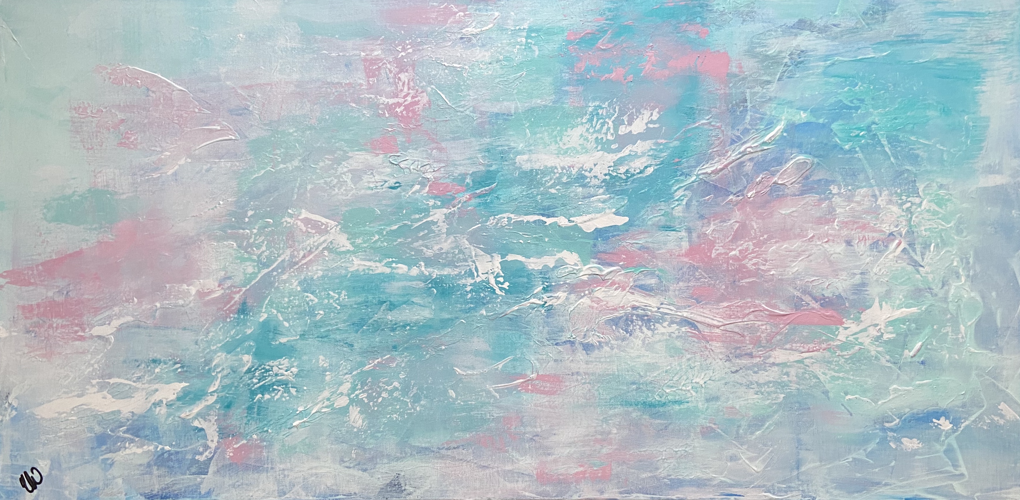 Impulse is a beautifully textured abstract piece with soft pastel colours that will brighten up any room in your home. Acrylic on canvas. Ready to hang.
