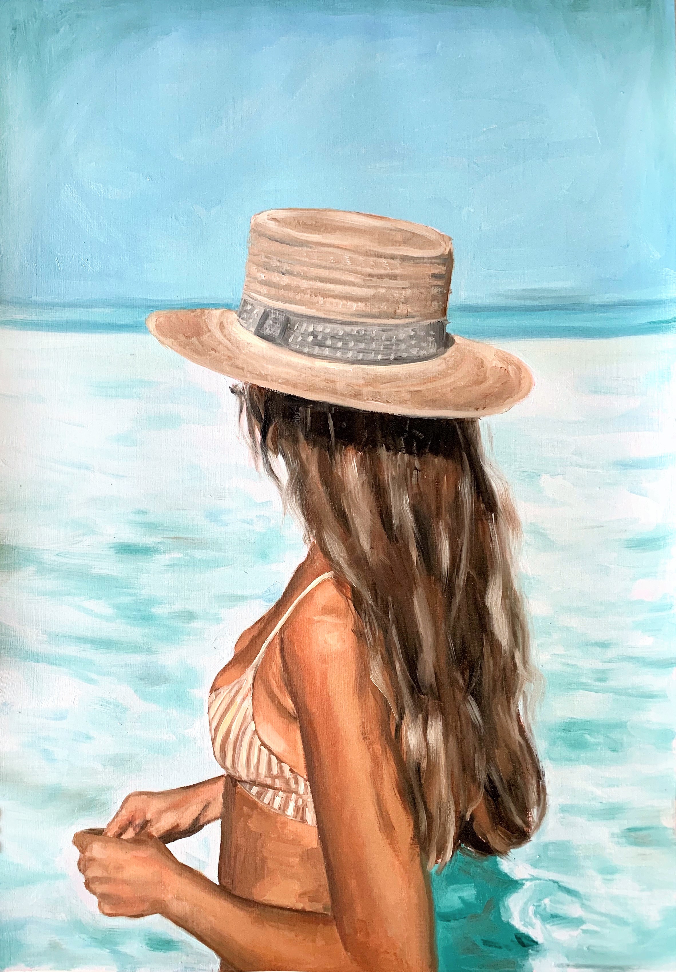 Original oil painting on paper of a dreamy beach scene. Where I’d rather be!