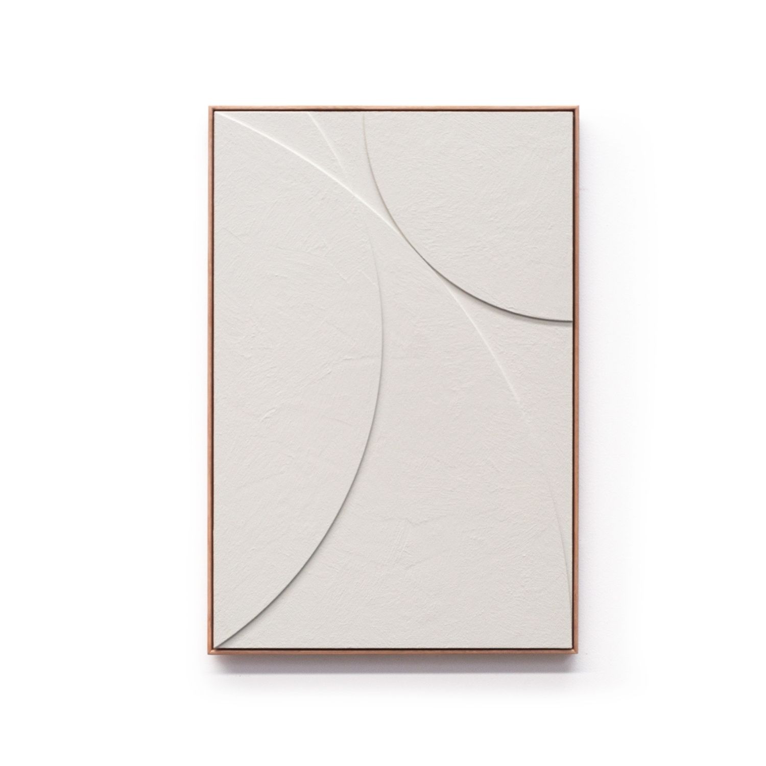 Introducing “In The Moment”, by Sureen Gouws – Â a captivating wall sculpture inspired by the moon’s energy and the harmonious perfection of a circle. Meticulously crafted from thin layers of timber and finished with warm, textured acrylic paint, this artwork embodies a soothing, minimalistic charm. Experience the ever-changing interplay of light, serving as a gentle reminder to embrace the present moment and make the most of each day.