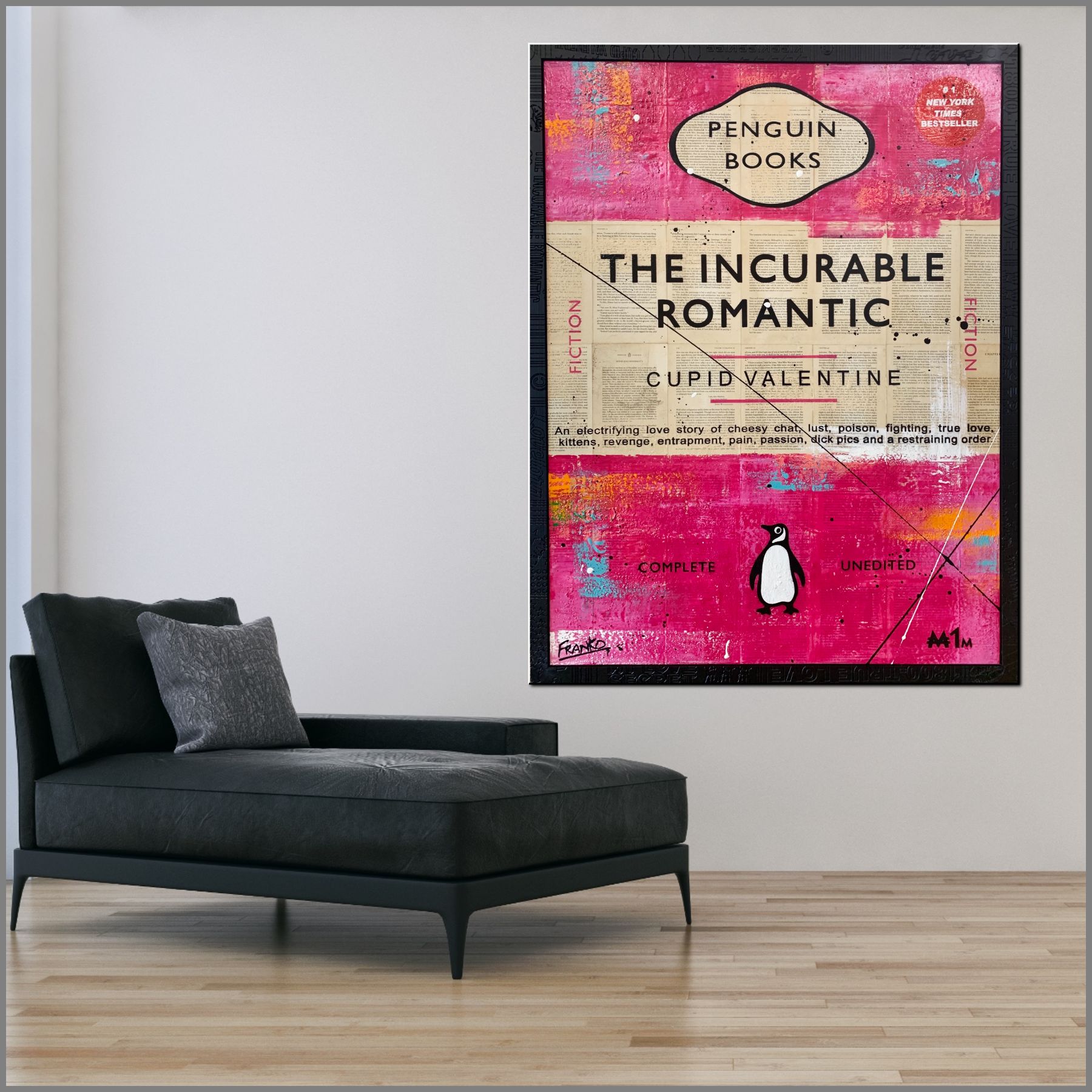 “Incurable” was created specially for “The Romantics” Art Lovers exhibition. This is a softer, more romantic extension of my “Unfuck” series. Painted on pages from the book “Sense and Sensibility” by Jane Austen.