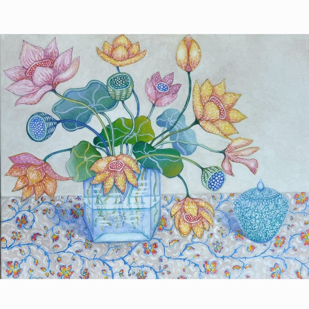 “Indian Lotus with Crackle Glaze Vase – Fiona Thorning