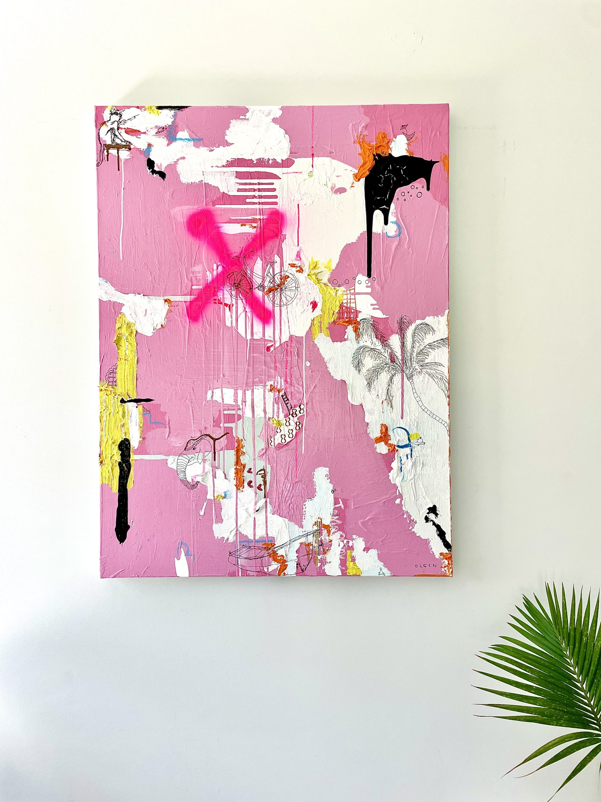 Indian Summer by Sleigh Olsen p Beautiful bright pink abstract original painting. Â Thick textural mediums and illustrations epitomising an Indian Summer.