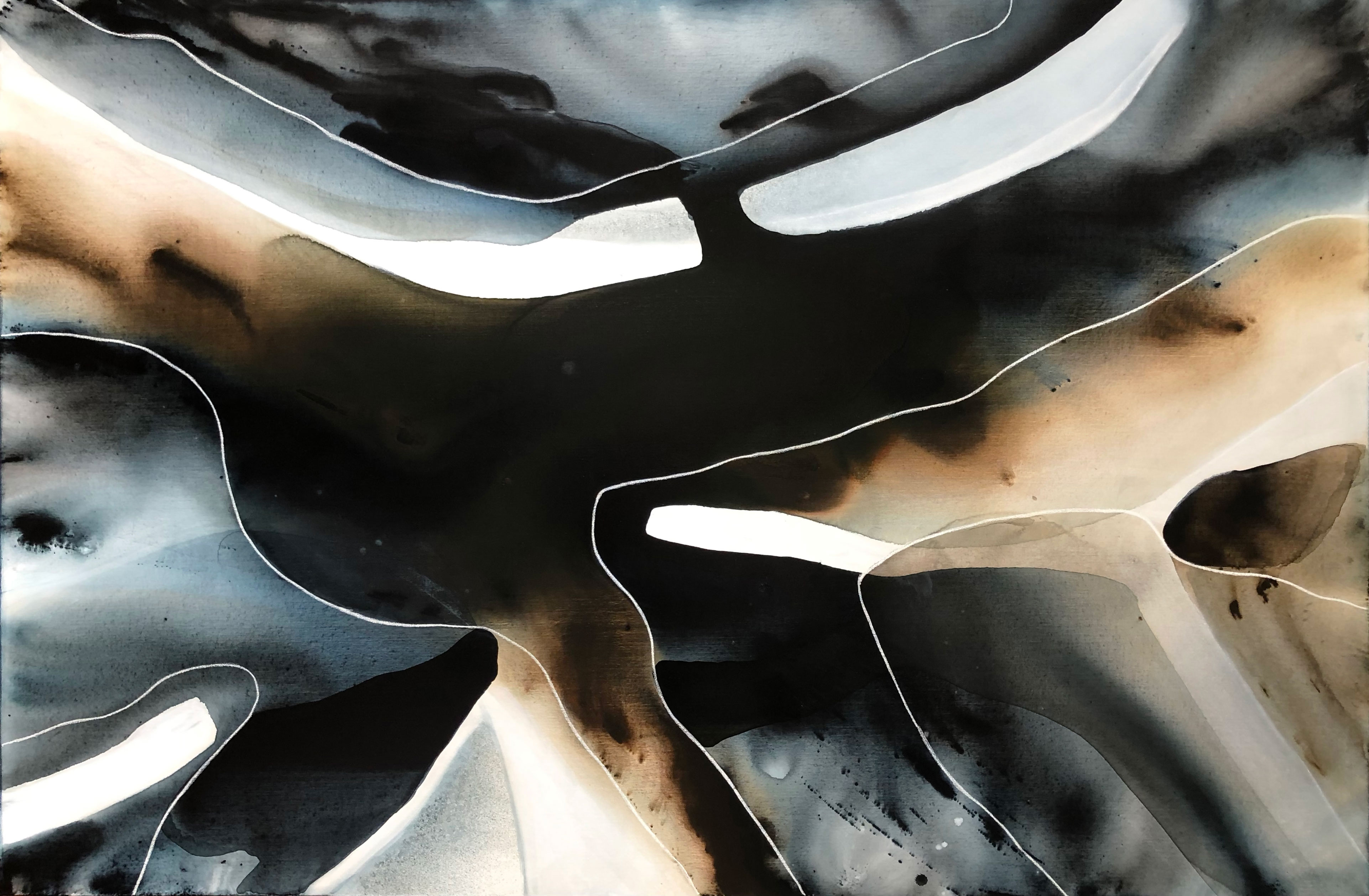 Indigo Stream 4 is inspired by the light, the colours and the natural beauty of the Noosa region of Australia. “What I love most about Noosa is the interplay of light. From the oceans to the clouds, to the river estuaries and the hinterland, this canvas unfolds before me every day and finds expression in my paintings”.