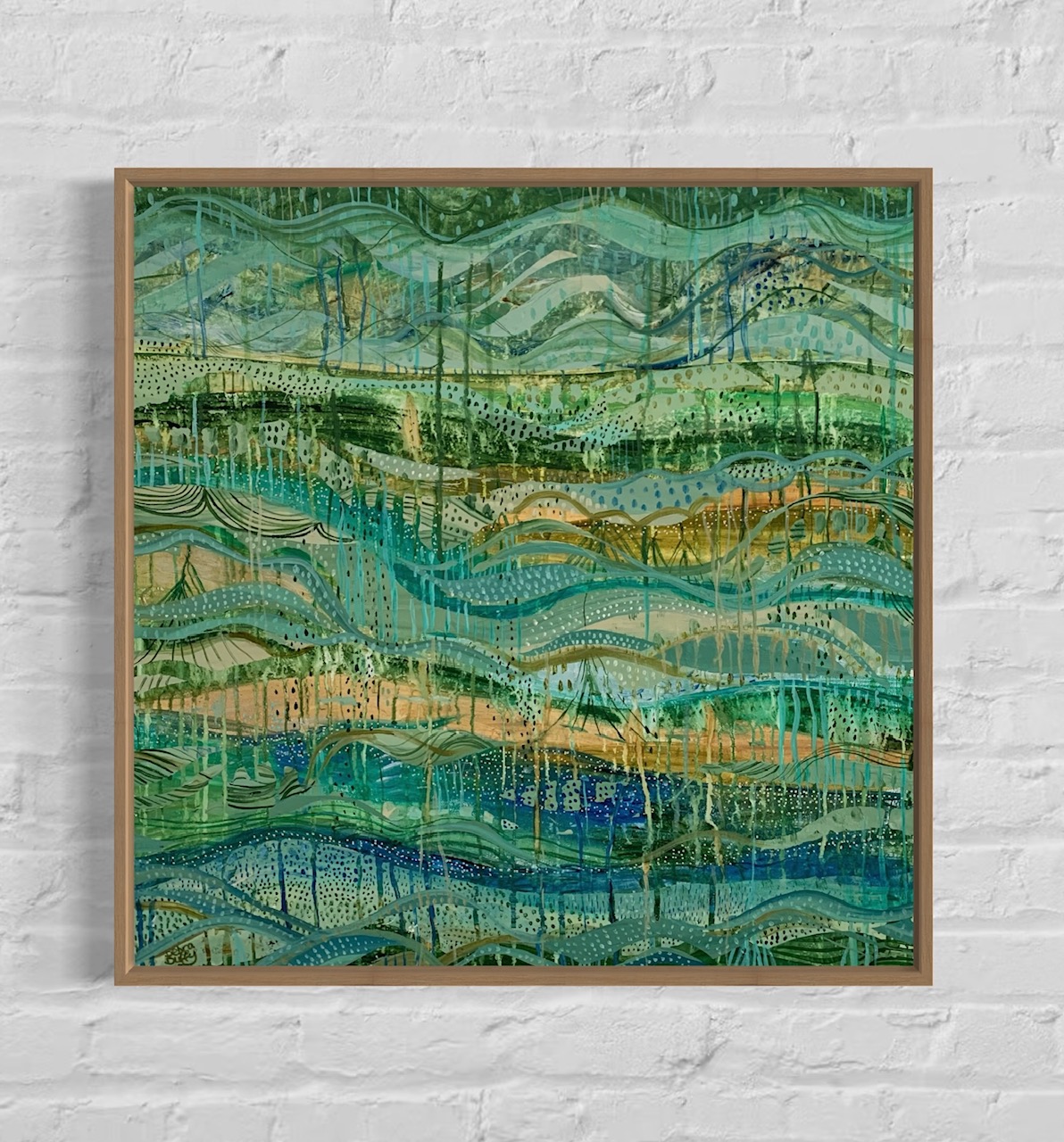 This artwork is an original abstract using and acrylic paint and artist marker on cotton canvas. This atmospheric abstract landscape was created by using layers of contrasting textures and intricate patterns with flowing lines accentuated with a rustic feel from paint drips weaving throughout and incorporating an earth inspired colour scheme. Hope you enjoy x