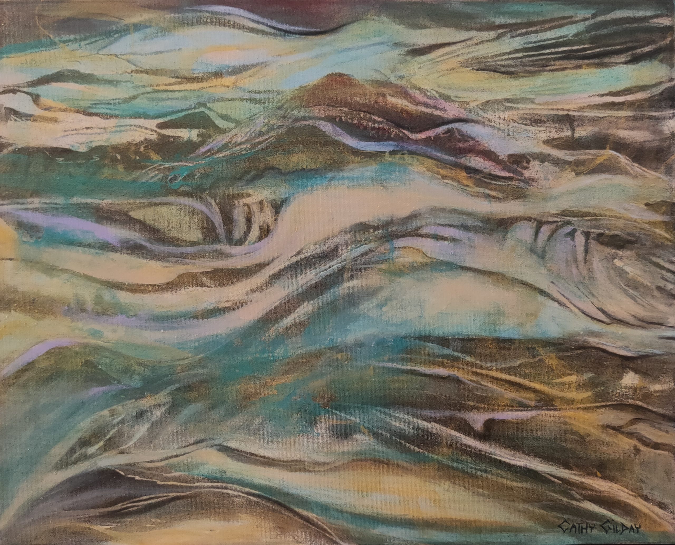 Infinite Horizons by Cathy Gilday –Â An abstract expressionist painting representing horizons and what they evoke in our minds. Our natural curiosity makes us inquisitive about what is over the next mound. Is the grass really greener on the other sides? The possibilities are infinite.