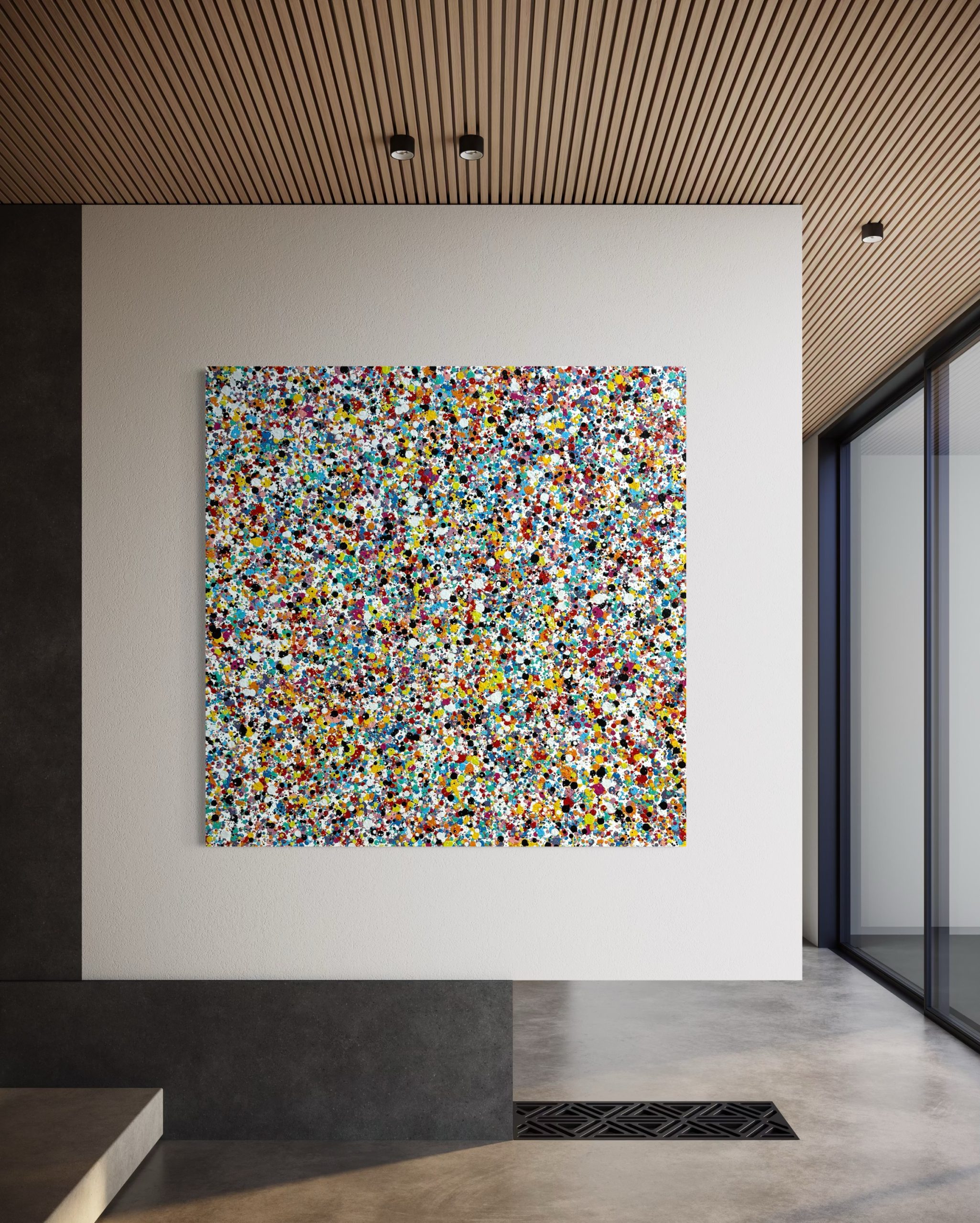 Infinite Sparks by Jonathan Redmayne. Infinite Sparks by Jonathan Redmayne features dynamic layering and composition to achieve a huge impact of vivid colour, energy and mosaic like movement.