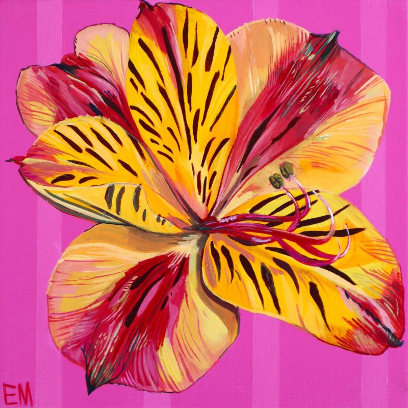 The fifth painting in Alicia’s popular Inkblot series. Inspired by her experience studying and working as a psychologist.
