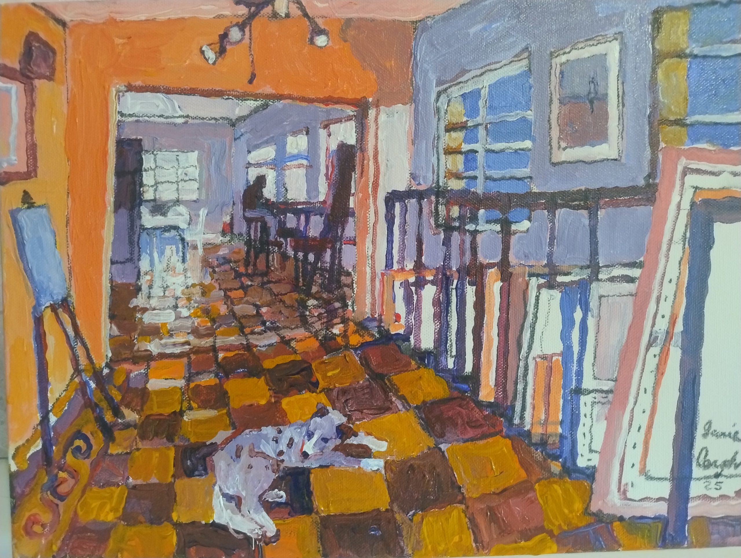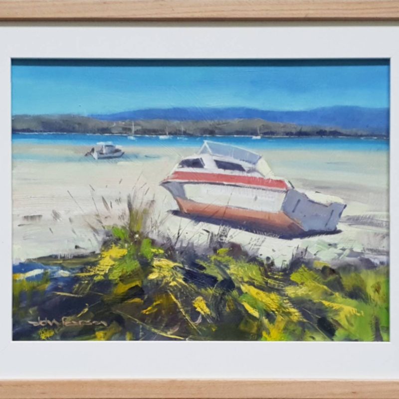 Inside Out at Redcliffe with Dog by Jamie Congdon – We sit looking out the window at a busy Redcliffe street. They drink latte I paint.