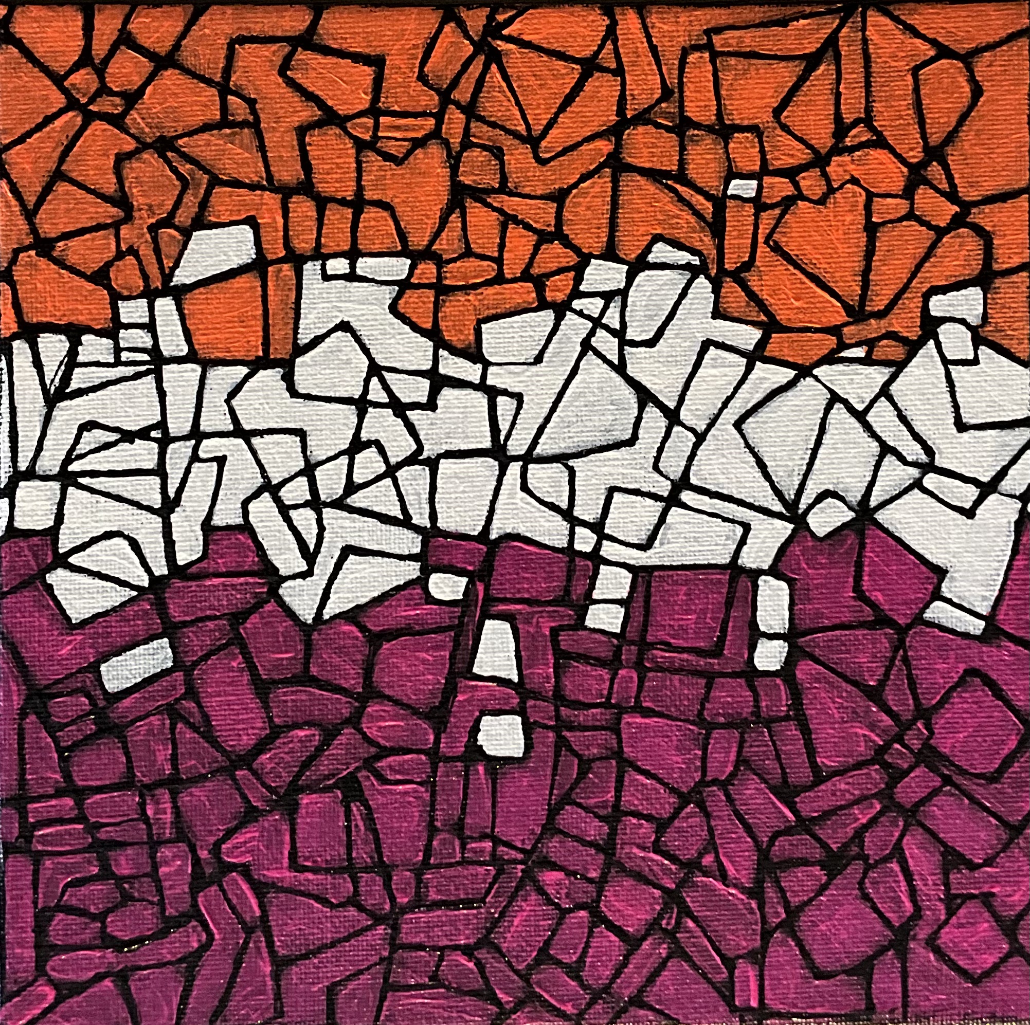 Abstract painting using squares, layer upon layer of squares and colour to create depth.
