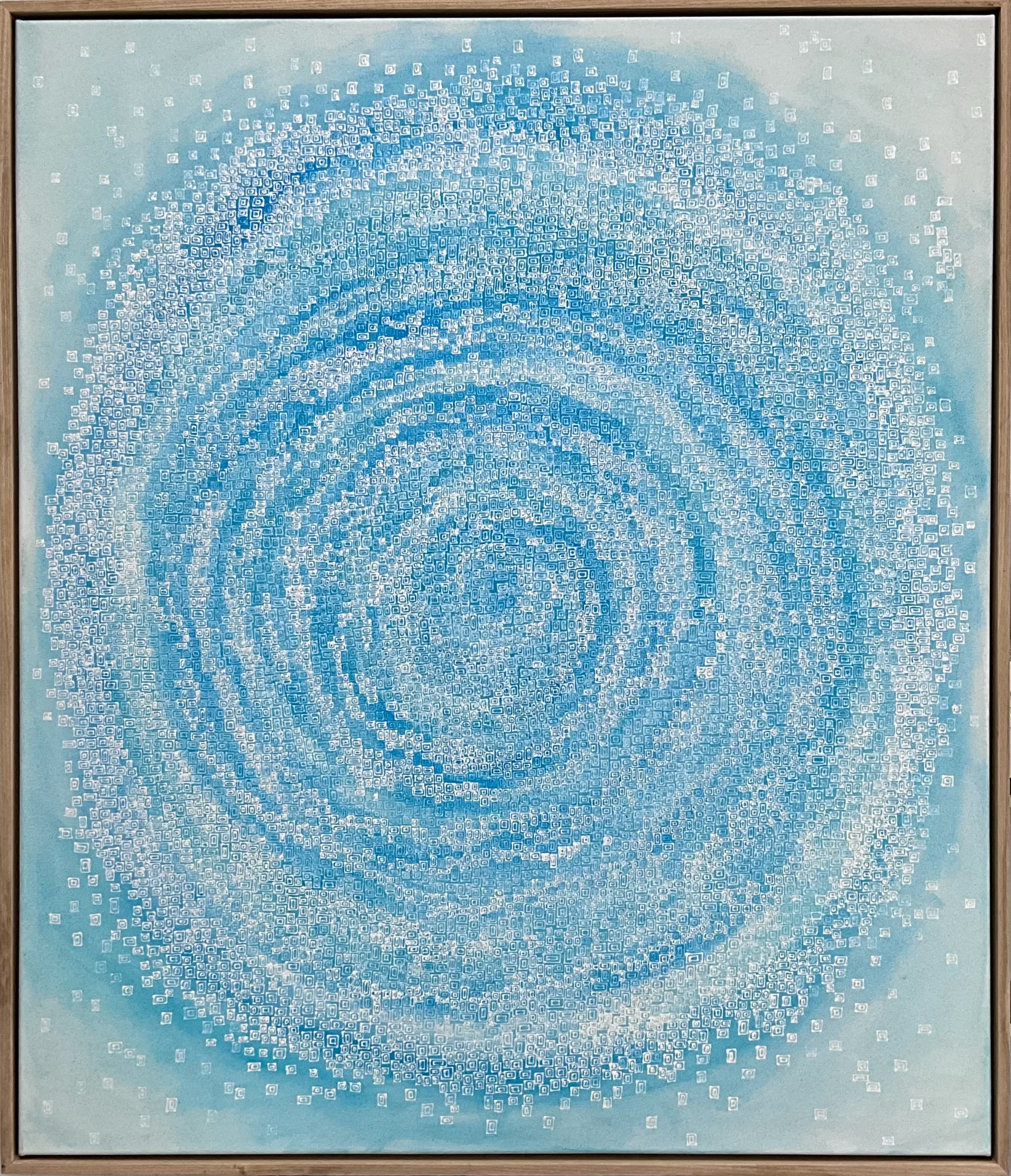 Abstract painting using square patterns. Beautiful blue and white.