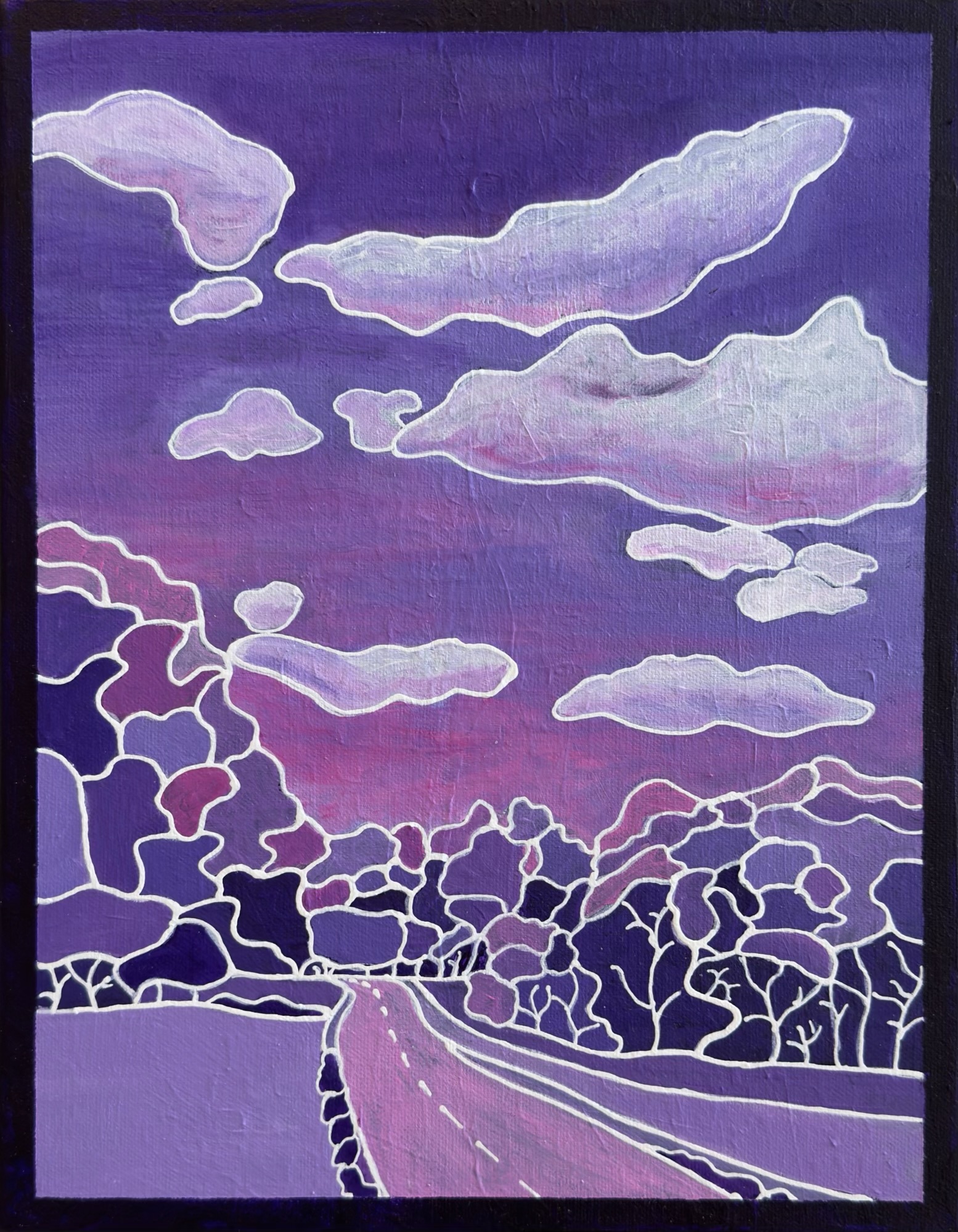 This painting is based on a photo I took when on my morning walk. The path and lots of trees.