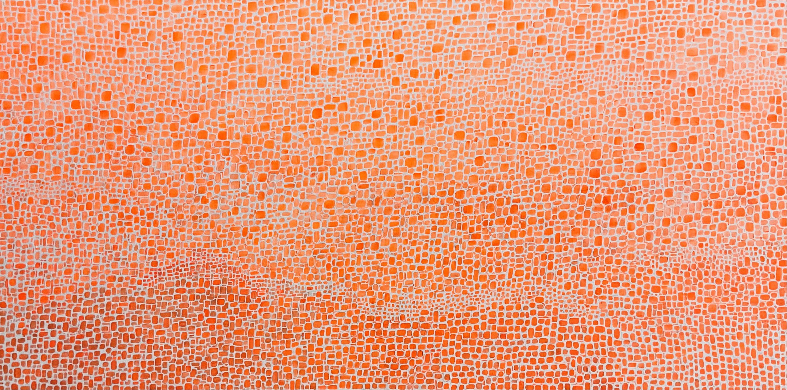 Abstract painting using square shape patterns, each shape outlined in white. Patterns and shapes. Beautiful bright fluoro orange. Brighten up any room.
