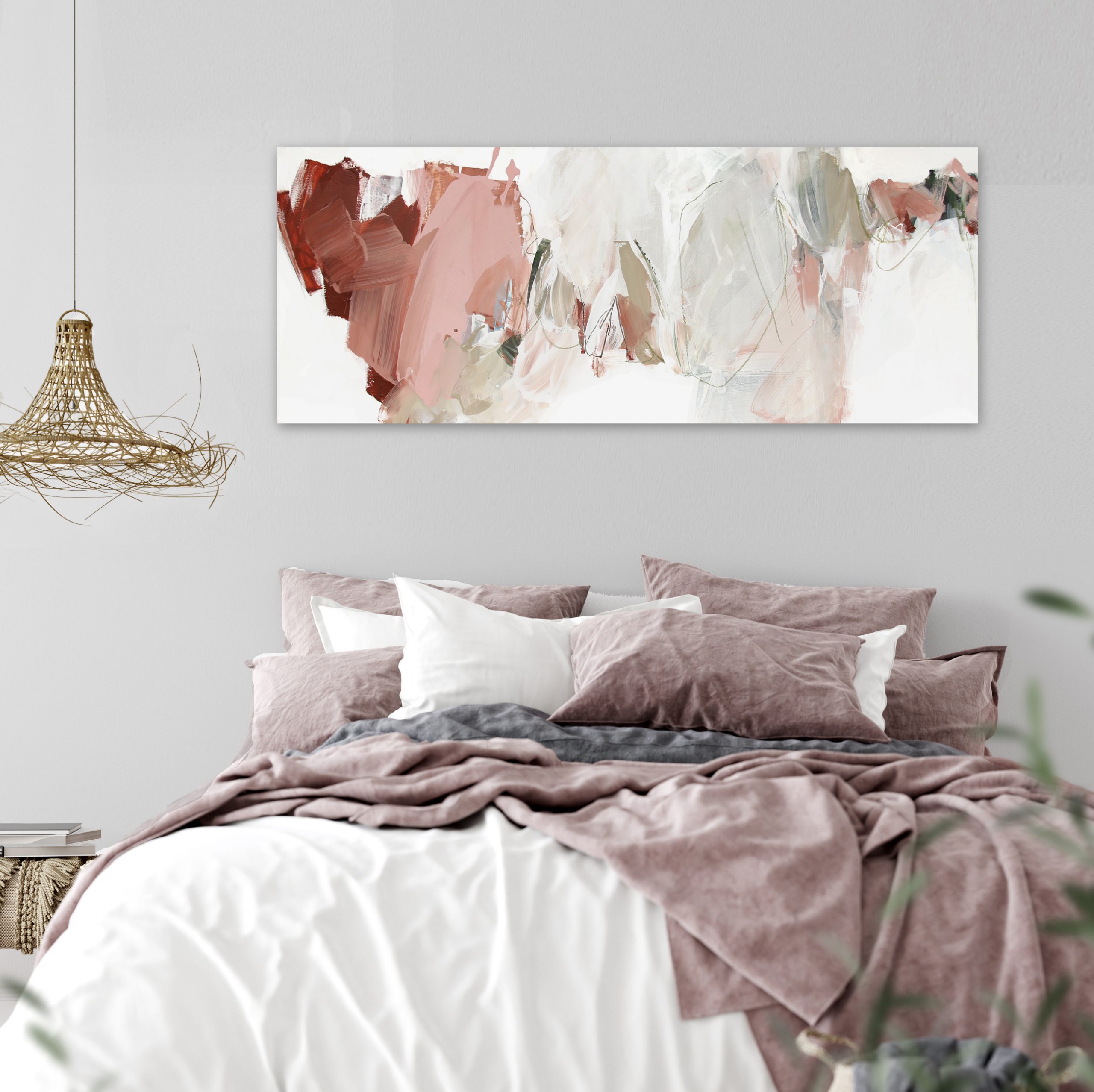 Intangible is a combination of musk pink, plum and neutrals with a hint of blue and olive green. The painting extends around the 3.8cm sides of the canvas so it’s ready to hang.