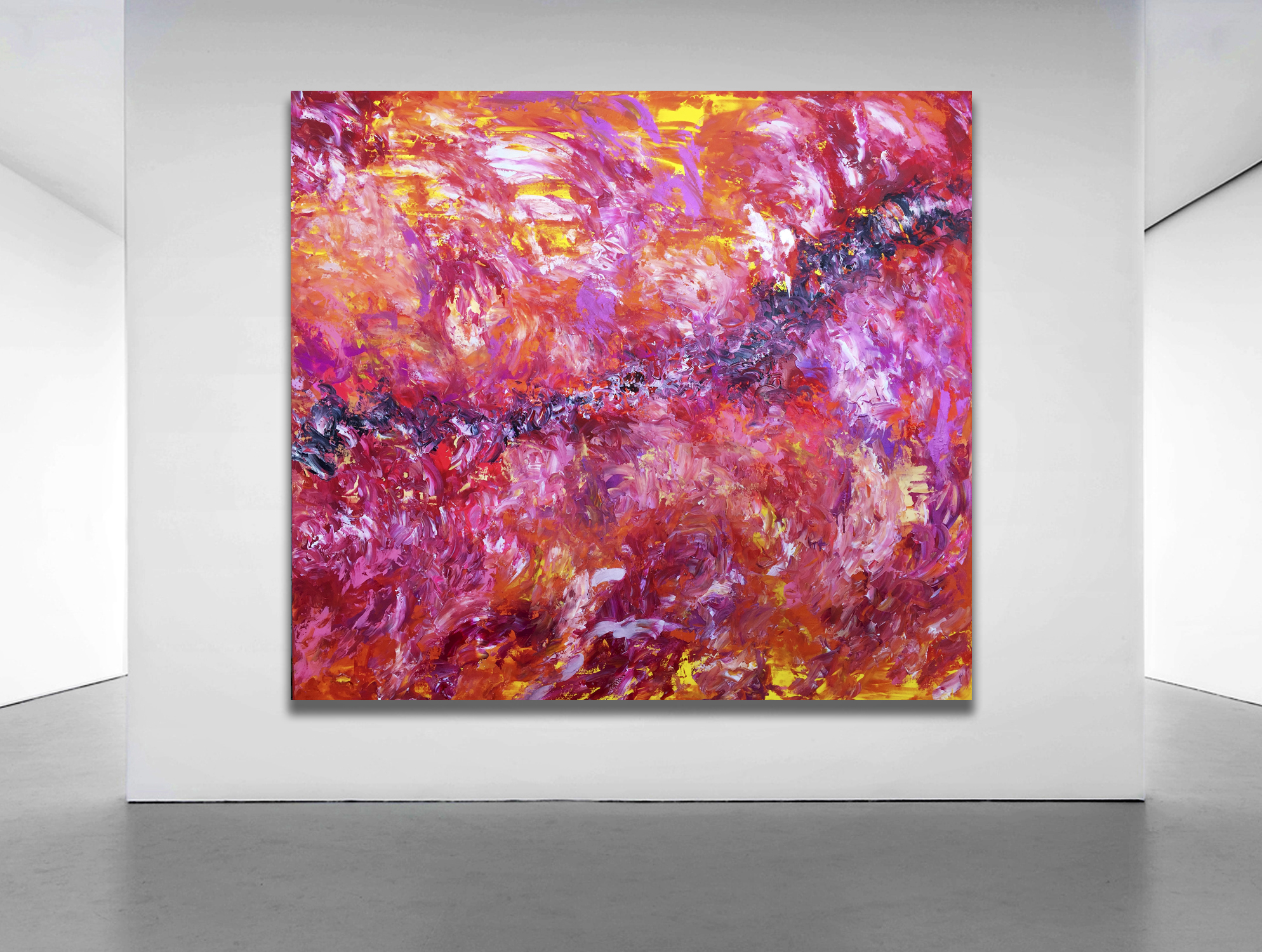 Intersect by Estelle Asmodelle – This work is painted on 12 oz gallery canvas and has been sealed with varnish. The canvas is hand-stretched onto a frame is 180 cm in width by 161 cm in height.