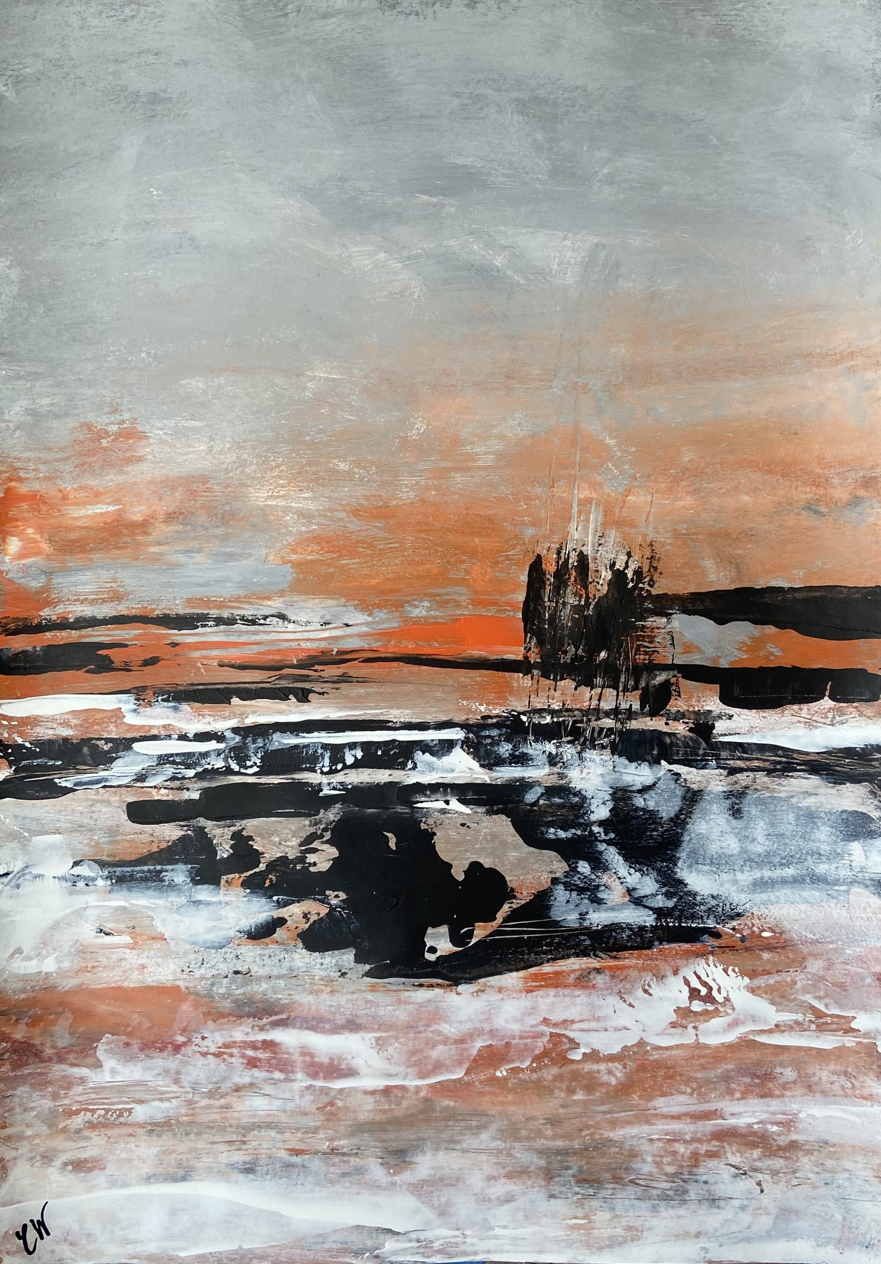 A beautiful abstract landscape painting. 59.4 x 42 cm (A2 size). Acrylic on paper. Frame not included. Requires framing.