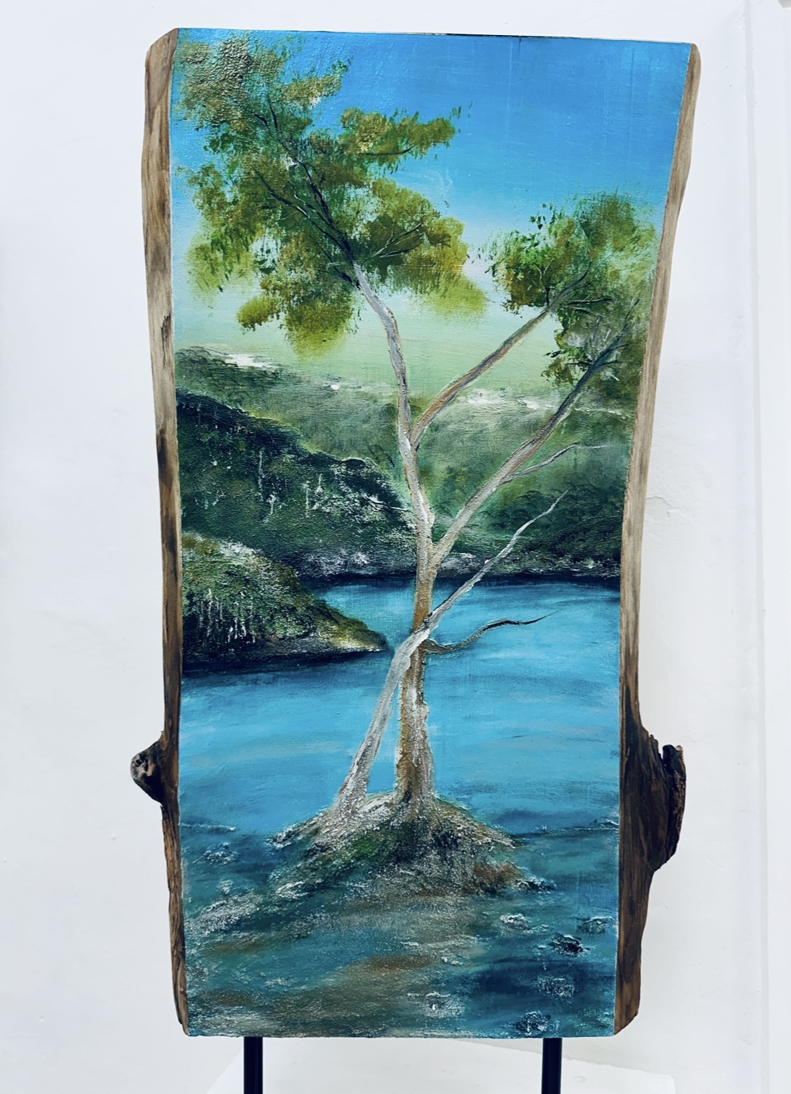 Mixed media on Camphor Laurel timber