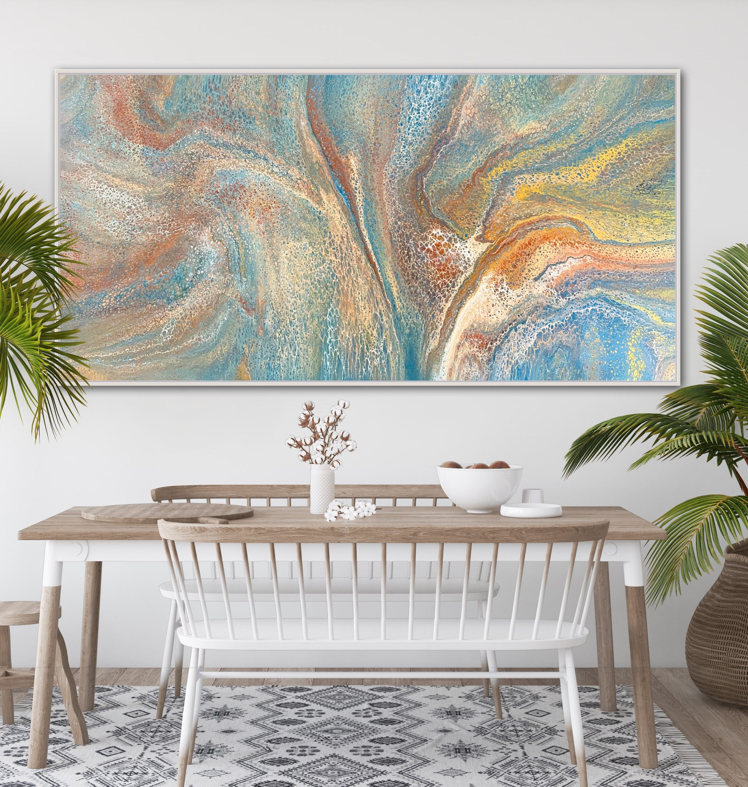 ‘In situ’ photos have been included to help with visualisation of the artwork in your home. In situ photos provided were created using the ArtStage app and may not be perfectly to scale. This being said, every effort has been made to represent the size of the art accurately but please read the dimensions of the artwork to ensure it fits your space perfectly. Where provided, photos of framed art are for illustrative purposes only.