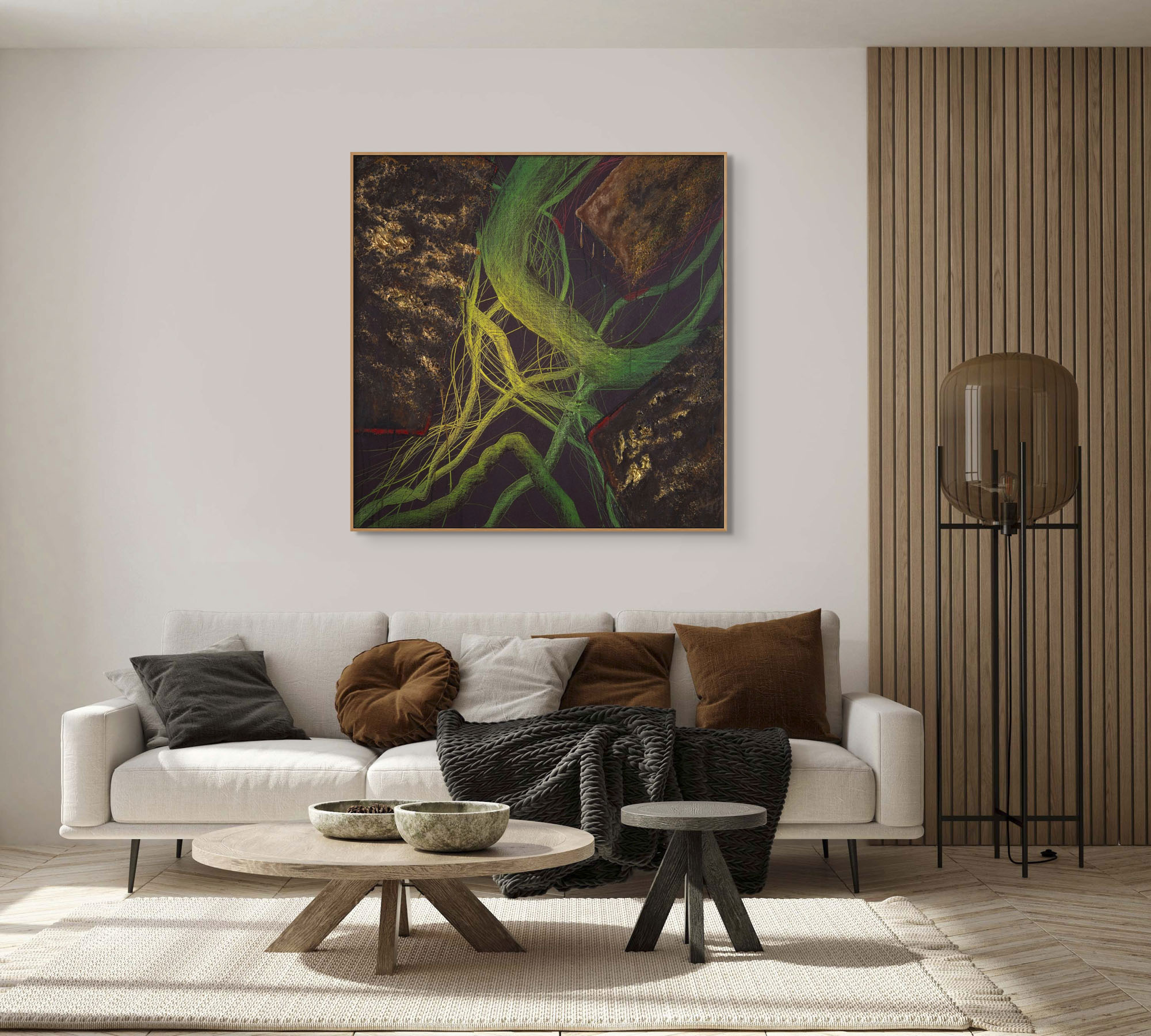 Step into this captivating world where energy and form merge, offering a glimpse into the essence of the moment of creation. As my art evolves, my commitment remains steadfast in exploring the vibrant connection between self-discovery and artistic expression. This collection bears witness to the concealed beauty within the abstract, waiting to be discovered and appreciated by those enchanted by the intrinsic magic of art. Welcome to ‘Intrinsic Essence,’ where each painting encapsulates a singular moment, resonating with the radiant energy surging during the free flow of creativity.