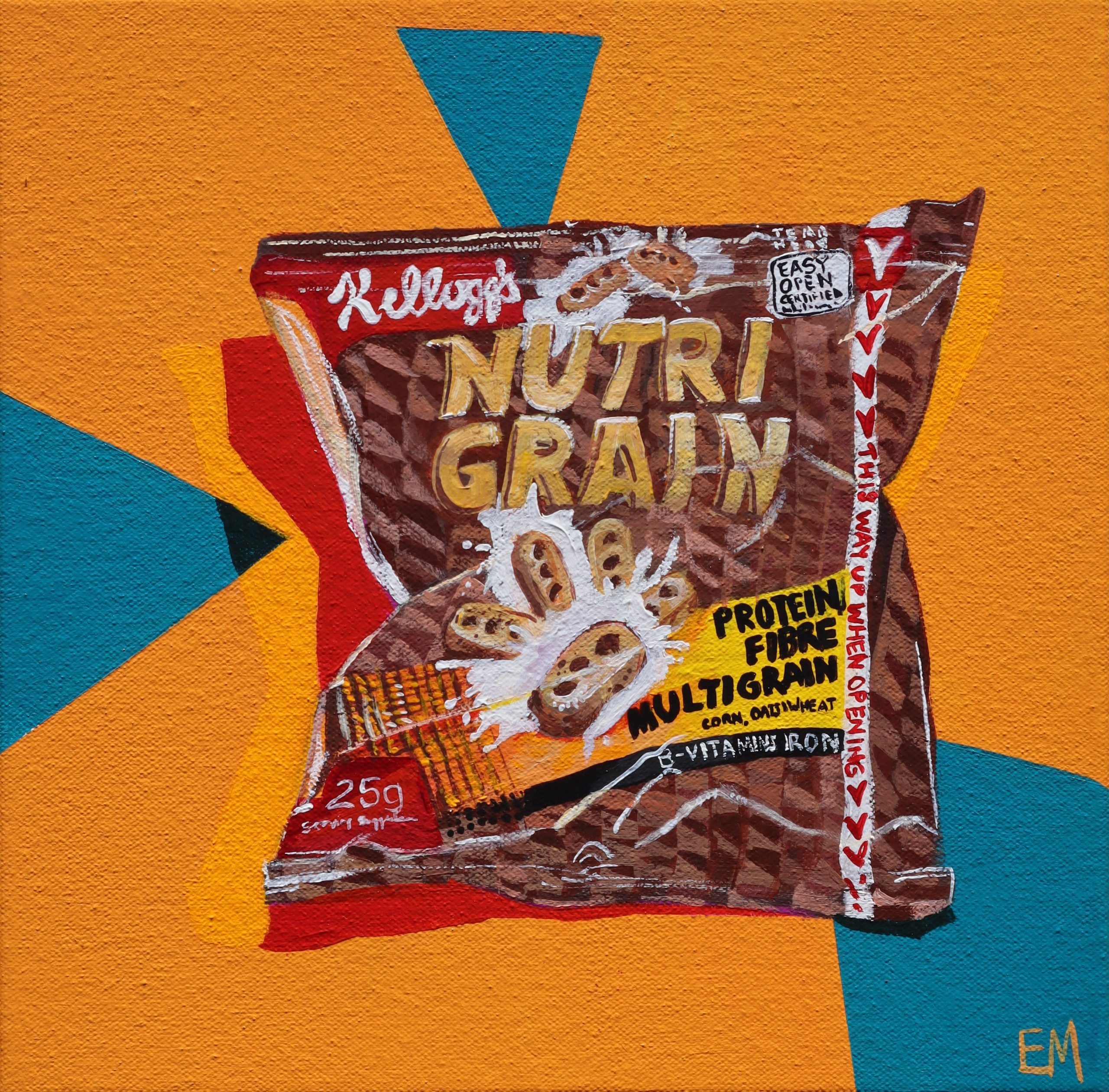 In this painting the triangles are a play on the discrete geometric design on the Nutri Grain packaging.
